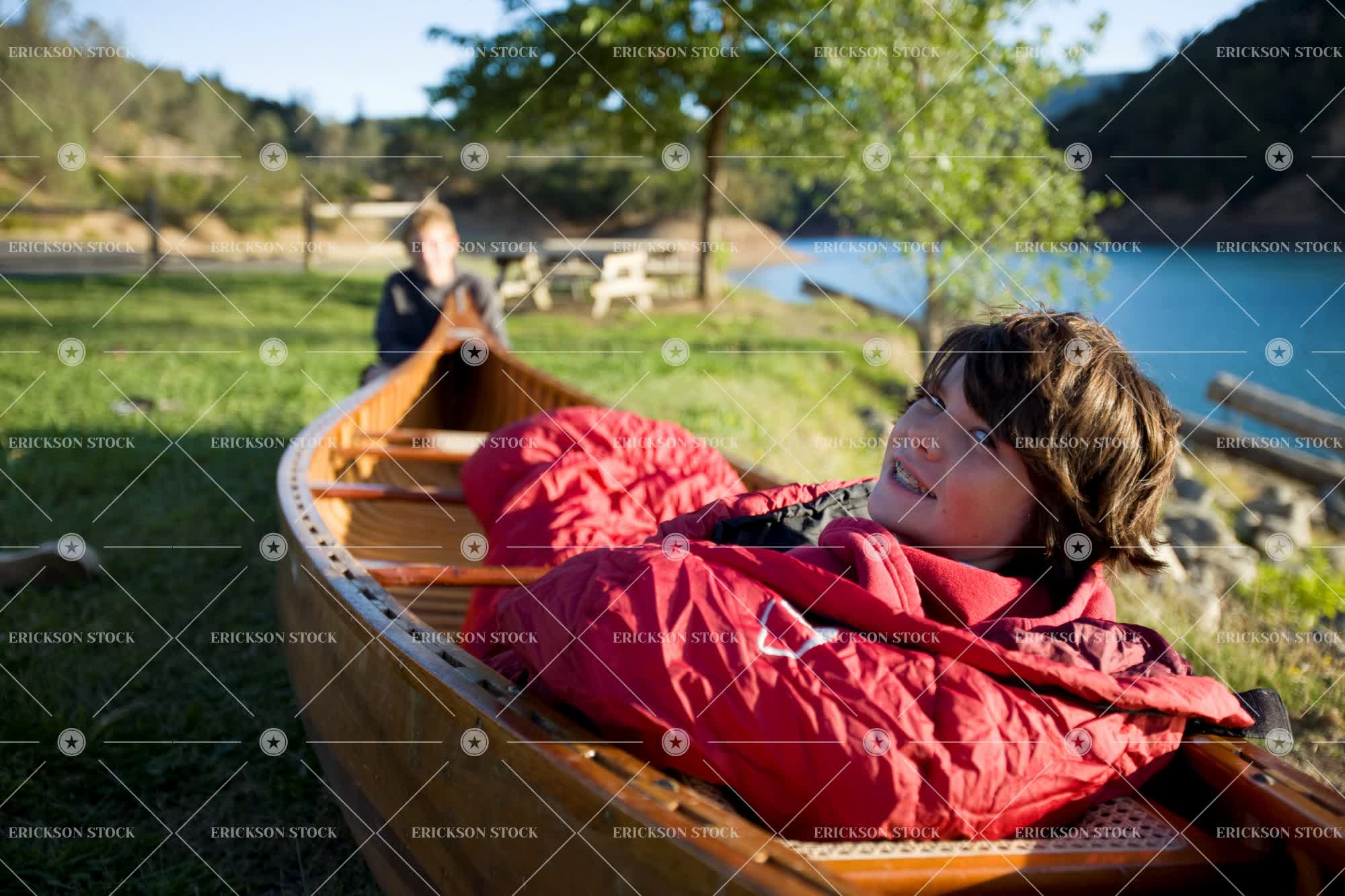 Tags boat, boy, brother, camp, canoe, casual clothes, caucasian, child, comfort, content, copy space, copy space left, day, Eye contact, friend, friends, friendship, full length, Growth, hill, hills, horizontal, kid, kids, Lake, lakes, look at camera, looking at camera, male, natural, nature, nautical vessel, nautical vessels, negative space, negative space left, outdoor, outdoors, outside, people, physical geography, pond, ponds, pre-adolescent, pre-adolescents, Pre-teen, pre-teens, preteen, preteens, relax, Relaxation, relaxed, relaxes, relaxing, sibling, siblings, sit, sitting, sleeping bag, sleeping bags, smile, smiles, smiling, subject right, teenage boy, teenager, together, togetherness, transport, Transportation, Tree, trees, tween, two people, warm, warmth, water
