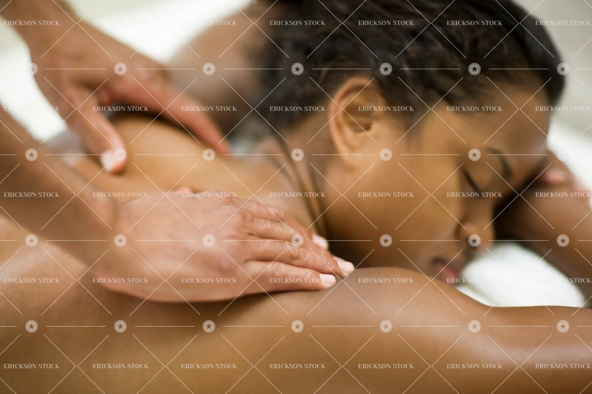 Tags adult, african american, alternative therapy, back, back rub, back view, beautiful, bed, body conscious, client, closed eyes, comfort, cropped, eyes closed, female, getting massage, hand, Hands, head, head & shoulders, head and shoulders, head shot, headshot, health, high angle, high angle view, horizontal, indoor, indoors, inside, lie down, lie on front, Lying down, lying on front, male, man, massage, massaging, masseuse, naked, Nude, part of, people, rear, rear view, Relaxation, relaxed, relaxing, relieving tension, salon, salons, selective focus, shoulders, skin care, spa, spas, teenager, tense, therapist, two people, wellbeing, wellness, woman, young adult