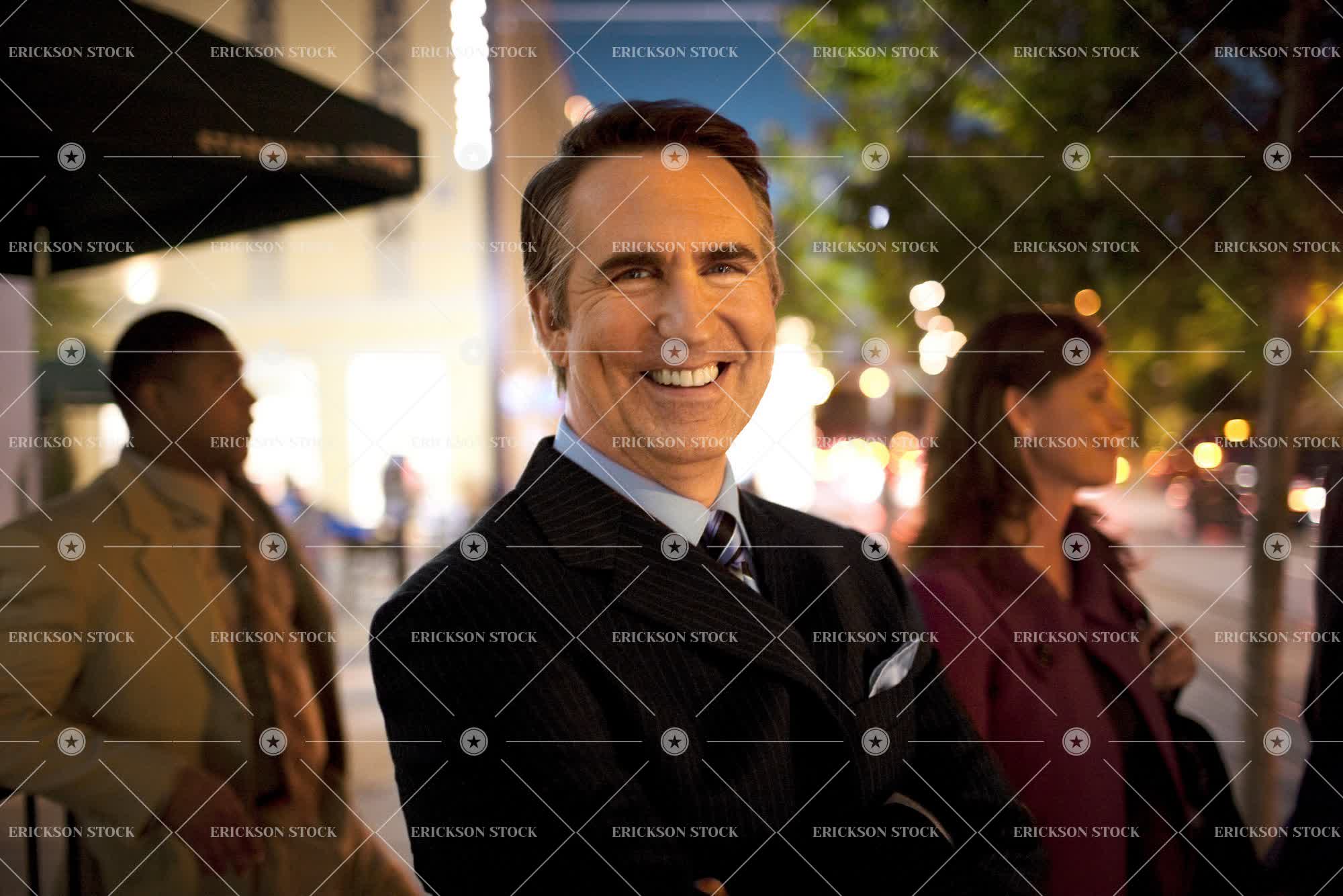 Tags adult, african american, brunette, business, business man, caucasian, cheerful, city, delight, enjoyment, executive, executives, Eye contact, female, gray hair, grey hair, half length, happiness, happy, horizontal, joy, joyful, leisure, leisure activities, leisure activity, look at camera, looking at camera, man, mature adult, mid adult, night, nightlife, nighttime, outdoor, outdoors, outside, people, person, portrait, Portraits, recreation, recreational pursuit, recreational pursuits, selective focus, senior adult, smile, smiling, suit, three quarter length, urban, urban scene, Urban scenes, waist up, well-dressed, woman, young adult