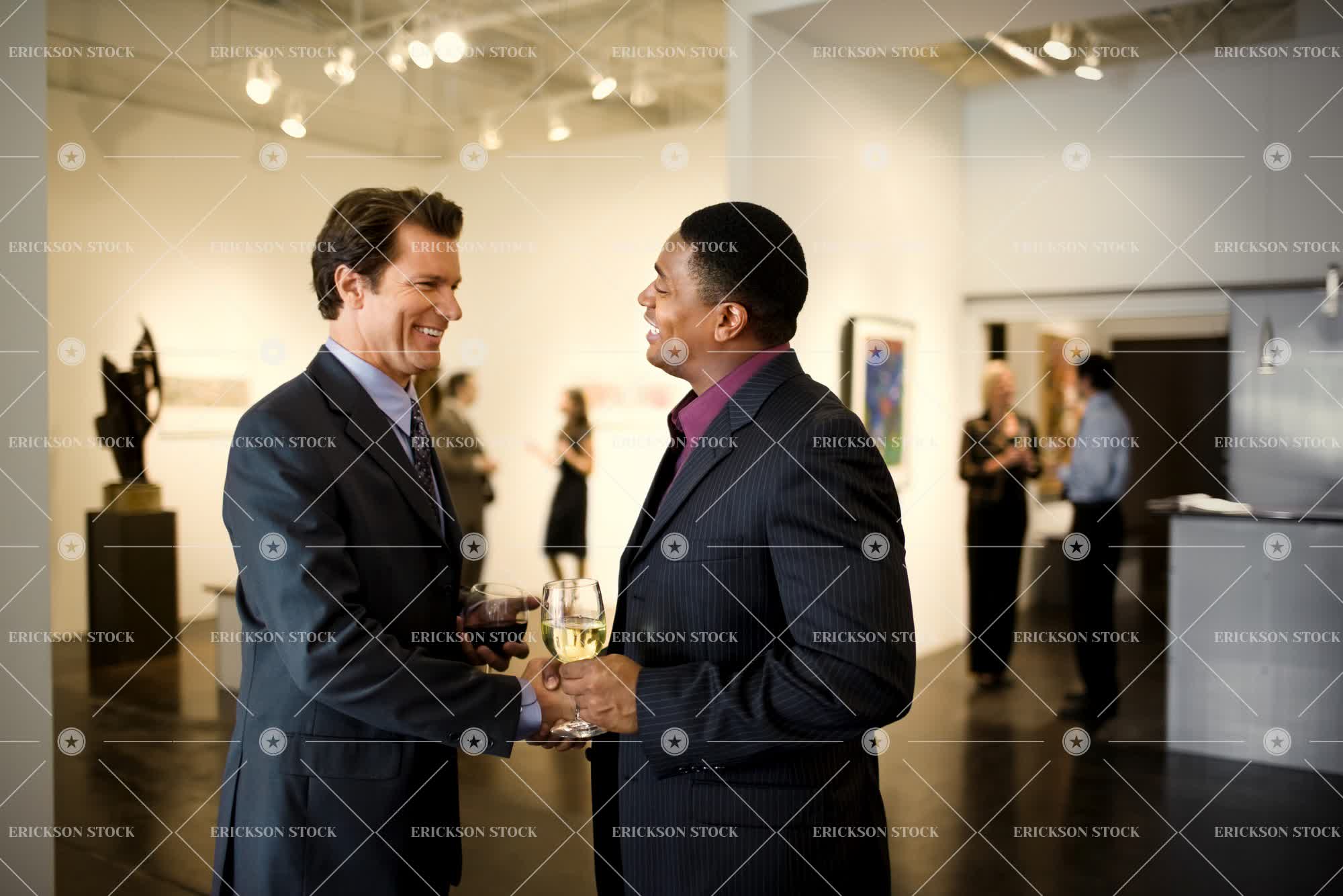 Tags adult, african american, art, art gallery, artwork, background people, black hair, blazer, brunette, business, business man, cheerful, colleague, conversation, delight, enjoyment, executive, executives, face to face, facing each other, friend, friends, friendship, Fun, galleries, gallery, gathering, gatherings, gray hair, grey hair, happiness, happy, having fun, hold, holding, holds, horizontal, indoor, indoors, inside, Jacket, jackets, joy, joyful, Light, lights, looking at each other, male, man, mature adult, mid adult, museum, museums, network, Networking, networks, opening, openings, painting, paintings, people, people in the background, person, Sculpture, sculptures, selective focus, smile, smiling, social gathering, social gatherings, social life, socialising, socializing, speak, speaking, speaks, stand, standing, stands, statue, Statues, talk, talking, talks, three quarter length, tie, ties, together, togetherness, two people, well-dressed, wine, wine glass, wine glasses, wineglass, wineglasses, young adult