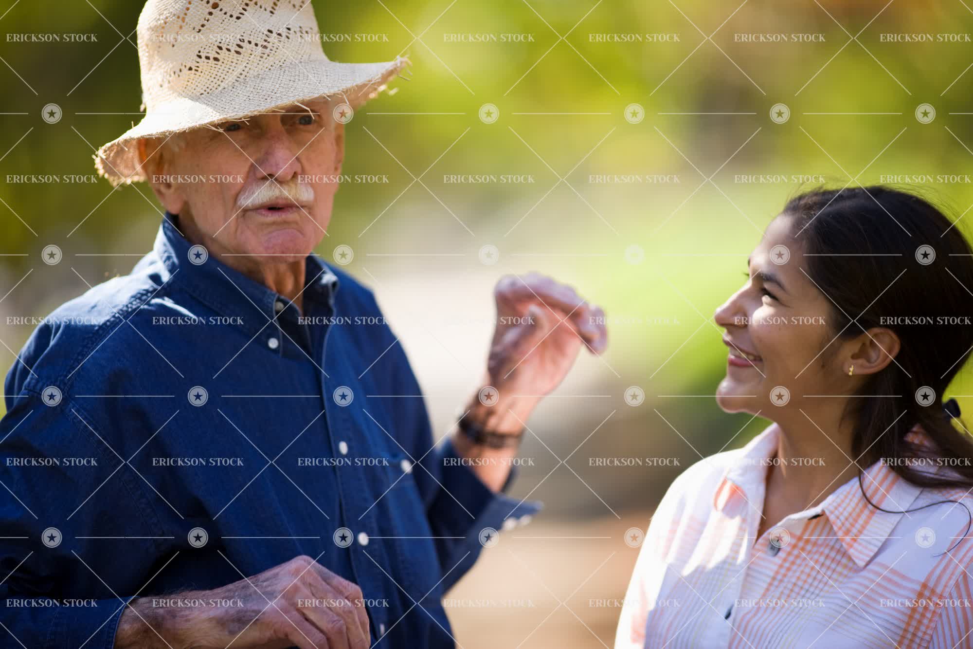 Tags adult, backyard, caucasian, day, elderly, female, front or back yard, frontyard, frontyards, garden, gardens, girl, girls, grandchild, grandchildren, granddad, granddads, granddaughter, granddaughters, grandfather, grandfathers, grandpa, grandparent, grandparents, grandpas, grass, happiness, hat, hats, head, head & shoulders, head and shoulders, head shot, headshot, horizontal, latin american, lawn, leisure, leisure activities, leisure activity, leisurely, male, man, mature adult, old, outdoor, outdoors, outside, people, retired, retirement, selective focus, senior adult, shoulders, smiling, Straw hat, straw hats, teenage girl, teenager, two people, woman, young adult