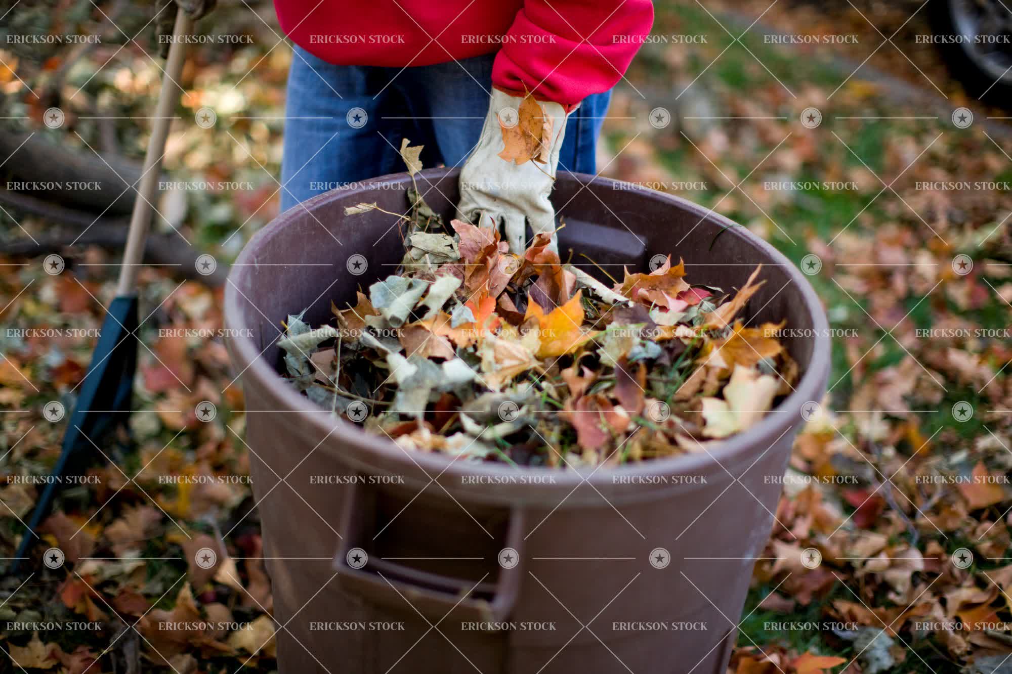 Tags autumn, backyard, bucket, cropped, day, fall, front or back yard, frontyard, frontyards, garden, gardening, gardening glove, gardening gloves, gardens, grass, horizontal, lawn, leaf, leaves, one person, outdoor, outdoors, outside, part of, people, person, rake, rakes, raking, selective focus