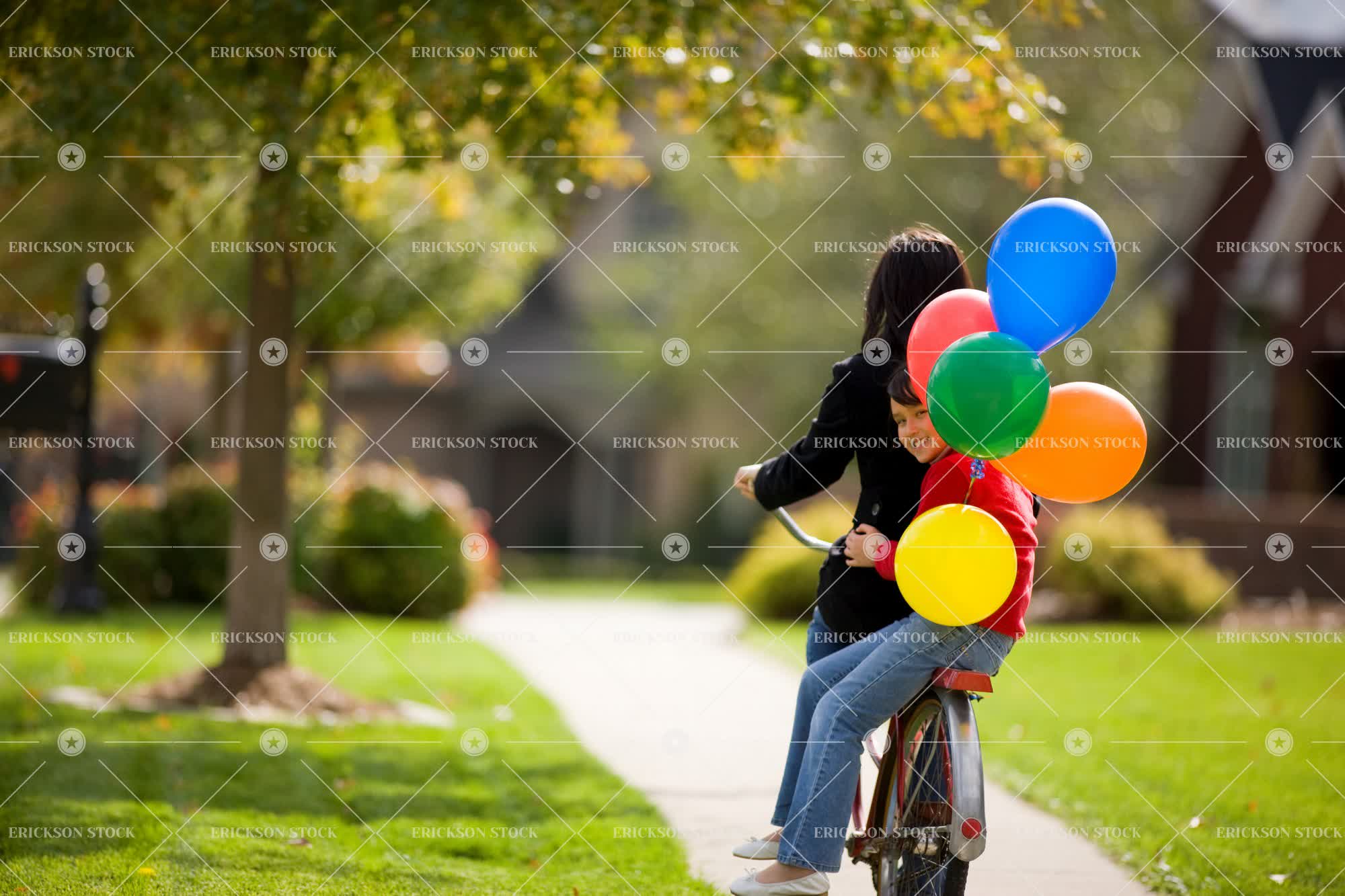Tags anticipation, asian, balloon, bike, birthday, birthday party, blue jeans, caucasian, child, copy space, copy space bottom, day, denim, elementary age, excited, excitement, female, focus on foreground, full length, garden, gardens, girl, girls, grass, happiness, happy, horizontal, jeans, kid, kids, lawn, lawns, leisure, leisure activities, leisure activity, leisurely, look over shoulder, looking over shoulder, mixed race, mixed race person, negative space bottom, outdoor, outdoors, outside, parties, party, people, recreation, recreational pursuit, recreational pursuits, ride, riding, riding bicycle, riding bike, selective focus, sibling, siblings, sister, sisters, sit, sitting, smile, smiling, teenage girl, teenager, transport, Transportation, Tree, trees, two people, young adult