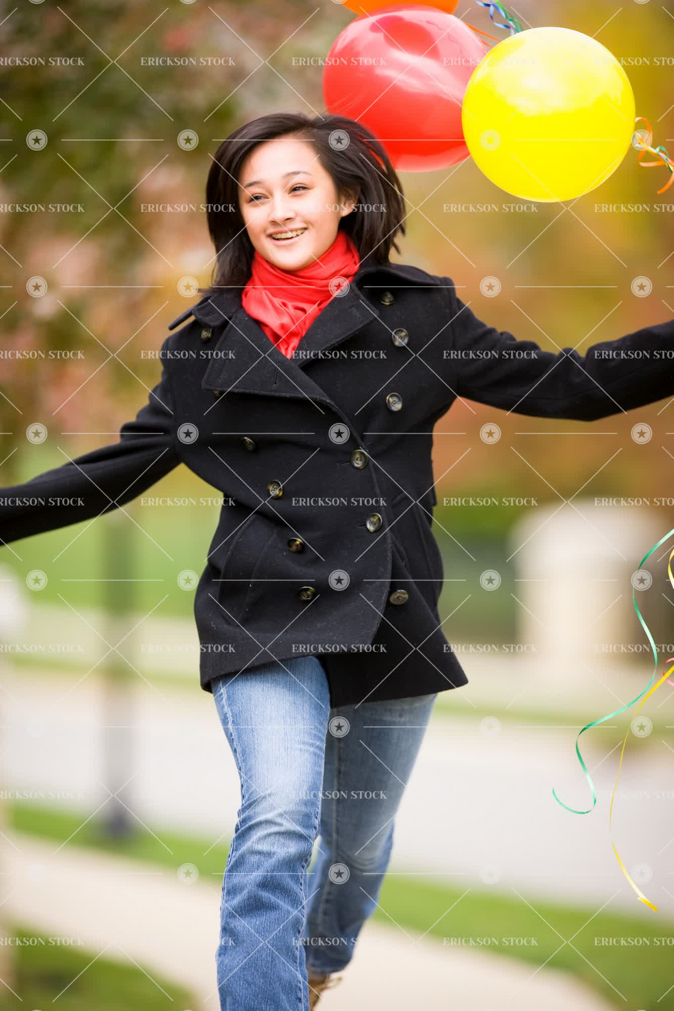 Tags active, anticipation, asian, autumn, balloon, birthday, birthday party, casual clothes, caucasian, celebrate, coat, excited, excitement, fall, female, footpath, footpaths, girl, girls, grin, grinning, Growth, happiness, happy, Jacket, jackets, joy, jump, jumping, leap, leaping, mixed race, mixed race person, natural, nature, one person, outdoor, outdoors, outside, parties, party, pavement, people, person, residential district, residential districts, road, roads, Running, scarf, scarves, selective focus, sidewalk, sidewalks, smile, smiles, smiling, street, streets, Suburb, suburban, suburbia, suburbs, teenage girl, teenager, three quarter length, Tree, trees, vertical, vitality, woman, young adult