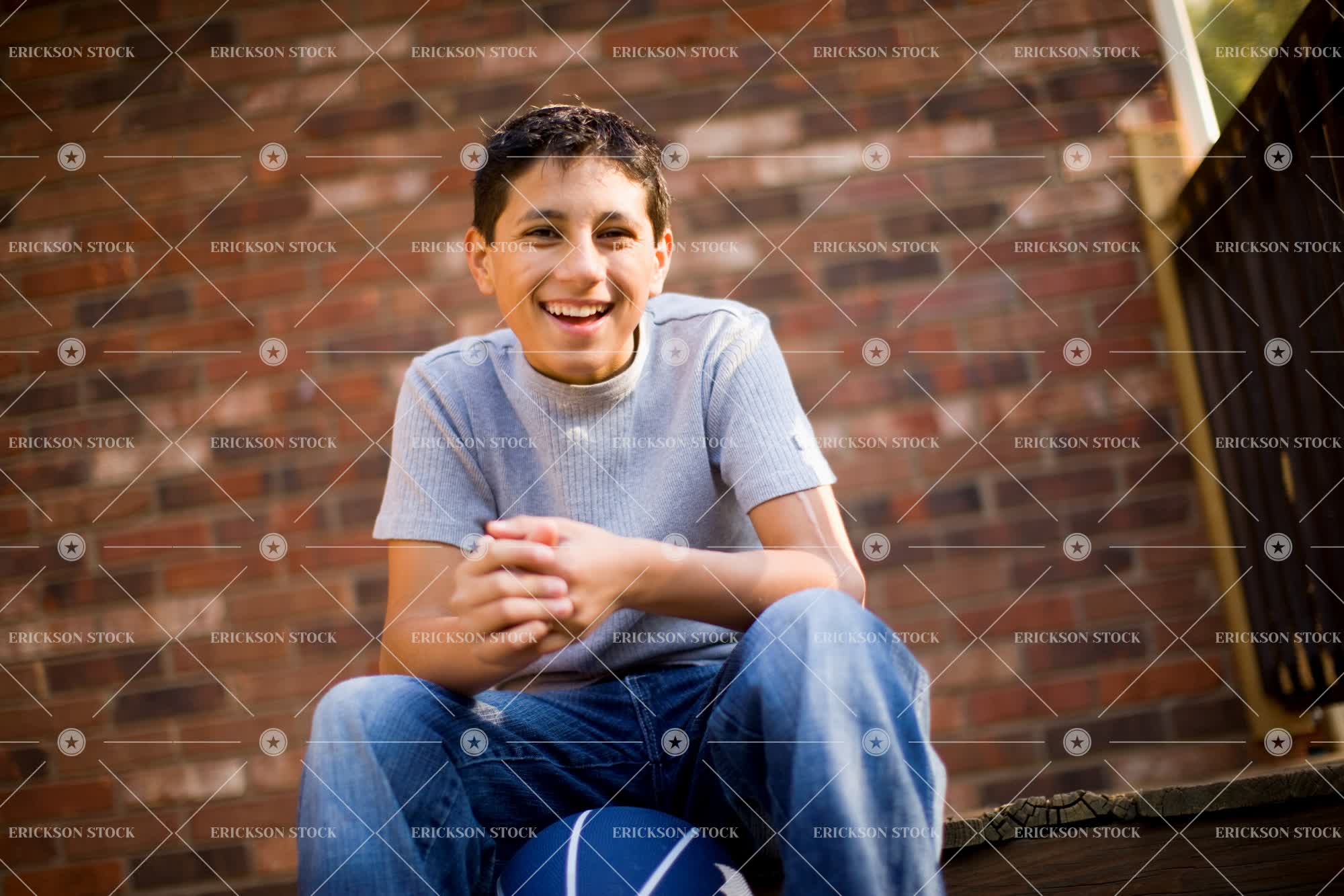 Tags ball, basketball, boy, brick, brick wall, building, canted angle, child, day, deck, focus on foreground, happiness, home, homes, horizontal, house, house exterior, house exteriors, household, households, houses, kid, kids, looking at camera, male, oblique angle, one person, outdoor, outdoors, outside, people, person, portrait, Portraits, pre-adolescent, pre-adolescents, Pre-teen, pre-teens, preteen, preteens, residence, residences, selective focus, sit, sitting, smiling, teenage boy, teenager, three quarter length, tilt, tilted angle, tween