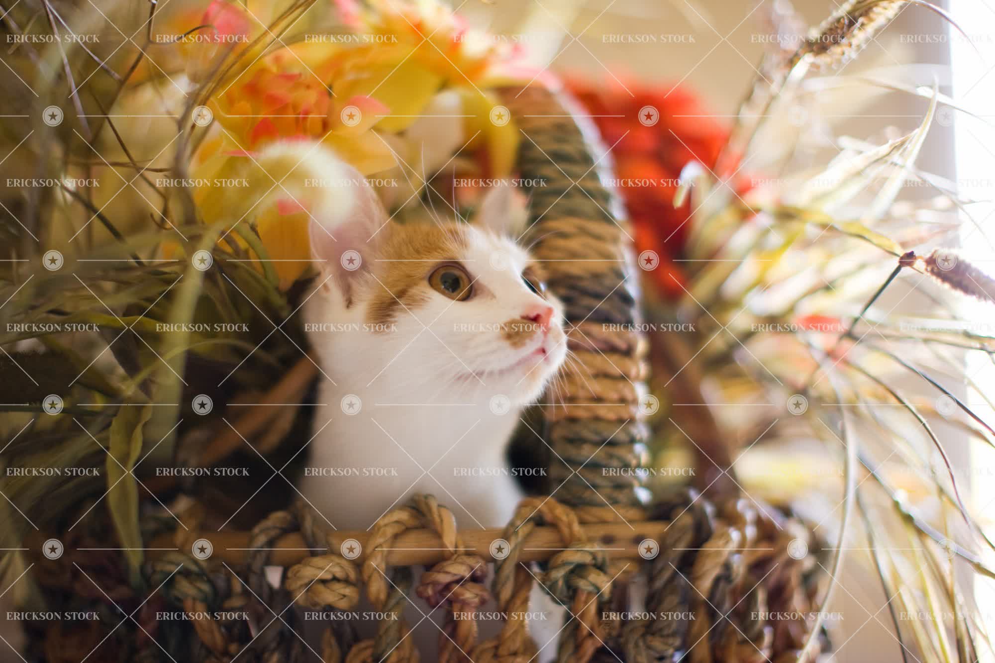 Tags adorable, animal, arrangement, basket, bouquet, bunch, cat, Cute, day, domestic, feline, felines, flower, flower bouquet, flower bouquets, flowers, horizontal, indoor, indoors, inside, long exposure, look up, looking up, nobody, one animal, pet, pets, selective focus