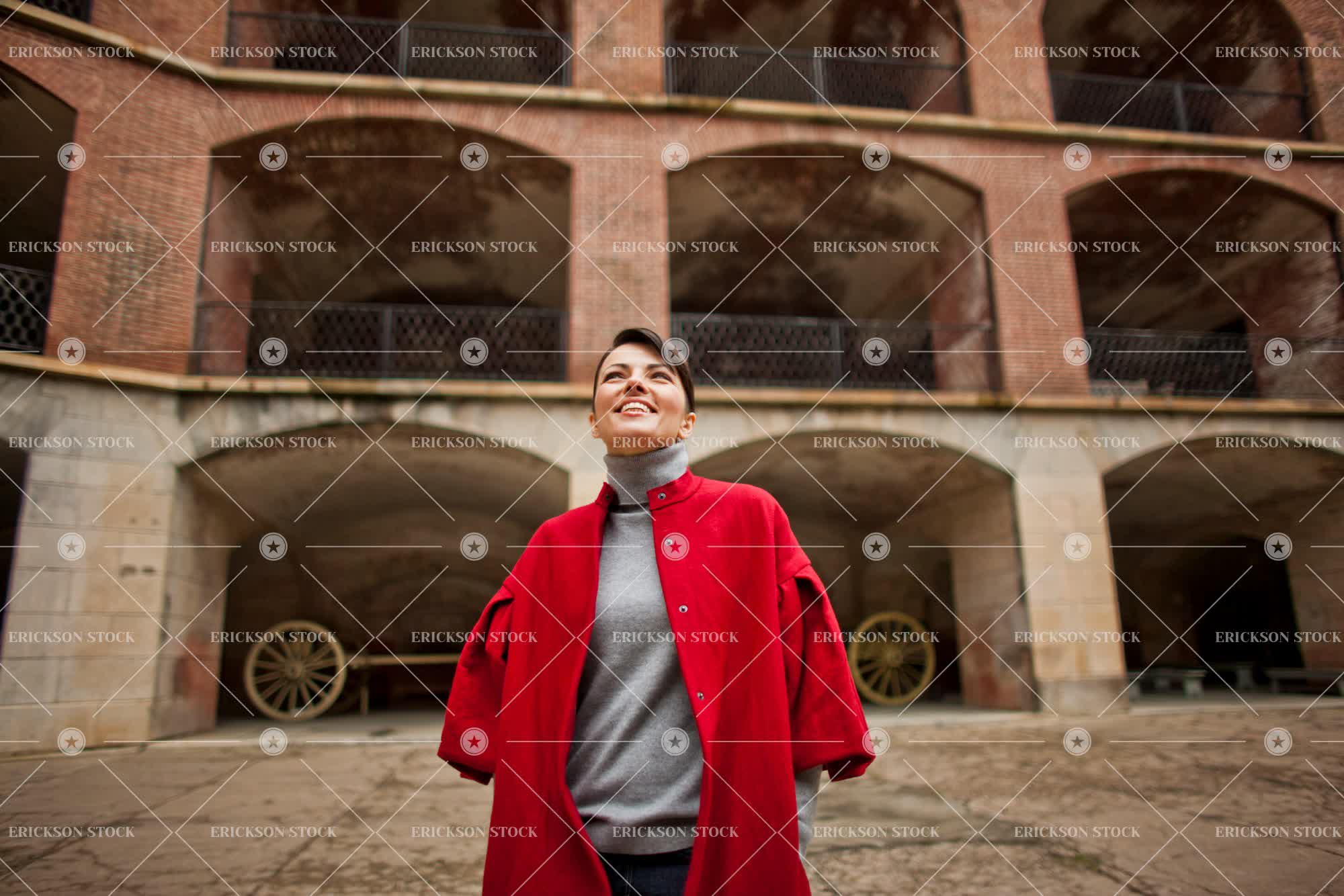 Tags adult, america, arch, architecture, brick, brick wall, brunette, building, cannon, caucasian, cheerful, city, coat, day, delight, enjoyment, female, hair back, hair tied up, half length, hand in pocket, hands in pockets, happiness, happy, historic, historic building, historic buildings, History, horizontal, Jacket, jackets, jersey, jerseys, joy, joyful, jumper, jumpers, leisure, leisure activities, leisure activity, look up, looking up, mid adult, one person, outdoor, outdoors, outside, people, person, pullover, pullovers, recreation, recreational pursuit, recreational pursuits, San Francisco, selective focus, smile, smiling, sweater, sweaters, top, tops, tourism, tourist attraction, tourist attractions, tourist destination, tourist destinations, travel, travel destination, travel destinations, urban, urban scene, Urban scenes, USA, waist up, wall, walls, weekend activities, weekend activity, woman, young adult