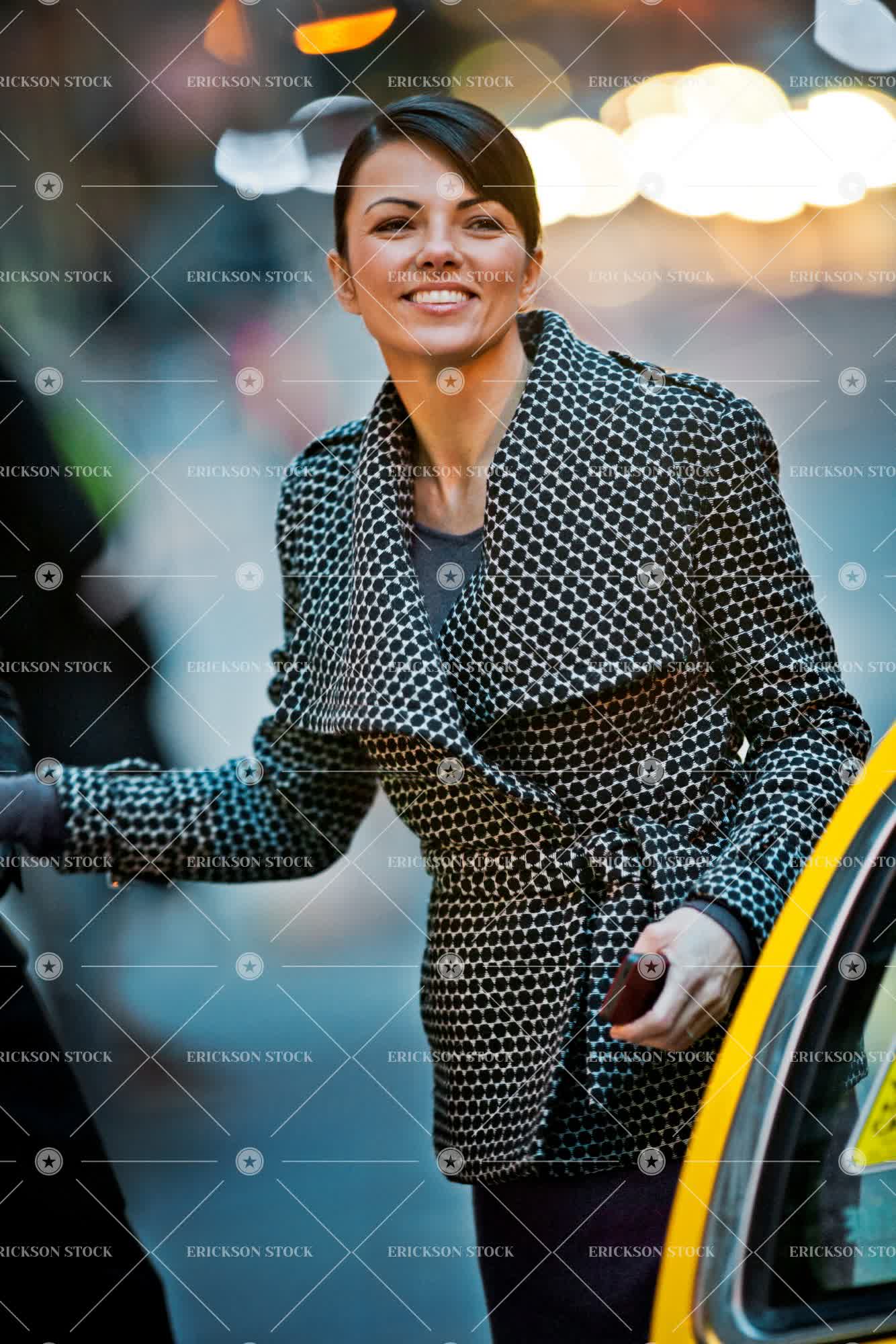 Tags adult, brunette, business, business attire, business woman, car, caucasian, cheerful, city, coat, day, delight, door, enjoyment, female, focus on foreground, get out, gets out, getting out, hair back, hair tied up, happiness, happy, Jacket, jackets, joy, joyful, mid adult, one person, outdoor, outdoors, outside, people, person, selective focus, smile, smiling, taxi, taxicab, taxicabs, taxis, three quarter length, transport, Transportation, urban, urban scene, Urban scenes, vehicle, vehicles, vertical, woman, young adult