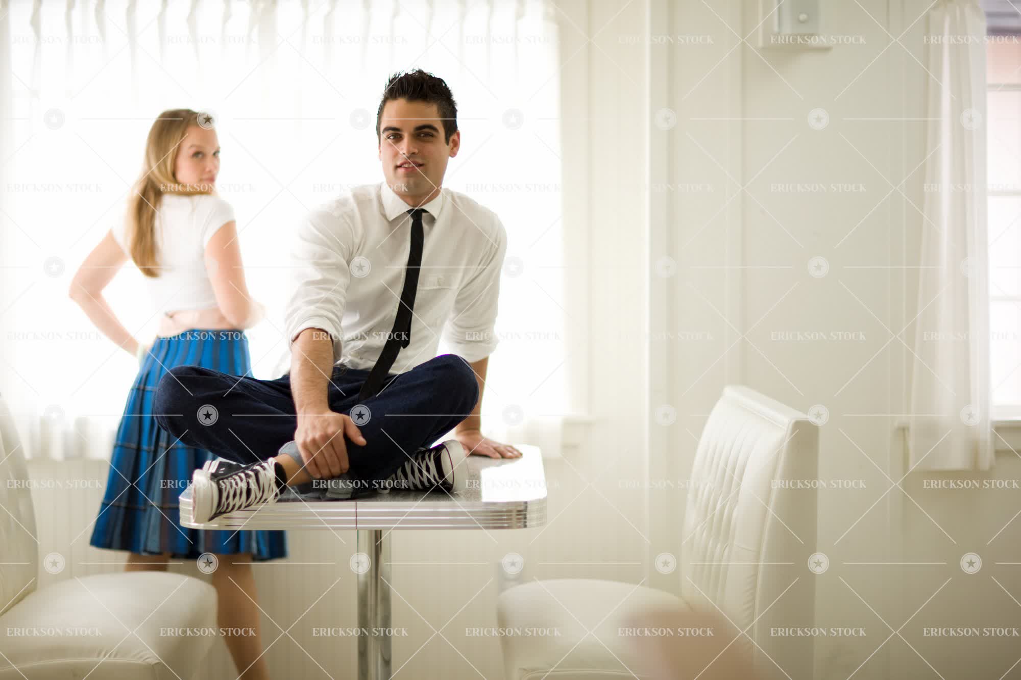 Tags 1950s style, adult, blond, booth, boyfriend, casual clothes, caucasian, couple, cross-legged, day, dining room, fashion, fashions, female, full length, girlfriend, girlfriends, happiness, happy, heterosexual couple, heterosexual couples, home, home interior, home interiors, homes, horizontal, house interior, house interiors, indoor, indoors, inside, interior, interiors, male, man, mature adult, mid adult, old fashioned, partner, past, people, period clothes, period clothing, relationship, relationships, retro, retro revival, seat, seating, seats, selective focus, shirt and tie, shirts and ties, sit, sitting, skirt, skirts, smile, smiling, stand, standing, table, Tables, three quarter length, together, togetherness, towhead, two people, Vintage, woman, young adult