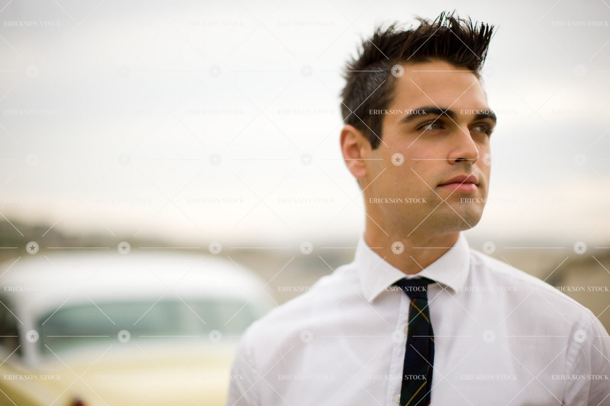 Tags 1950s style, adult, brunette, button down shirt, car, collared shirt, contemplate, copy space, copy space left, day, front view, head, head & shoulders, head and shoulders, head shot, headshot, look away, looking away, male, man, mature adult, negative space, negative space left, old fashioned, one person, outdoor, outdoors, outside, past, pensive, people, period clothing, period costume, person, portrait, Portraits, retro, retro revival, selective focus, serious, shirt, shirts, shoulders, thinking, thoughtful, tie, ties, transport, Transportation, vehicle, vehicles, Vintage, vintage car, young adult