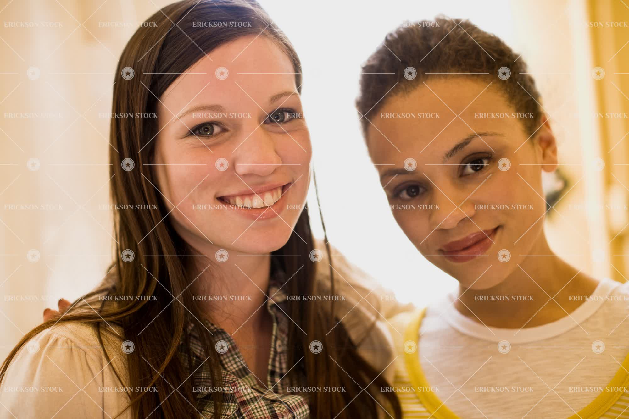 Tags adult, african american, bedroom, bond, casual clothes, caucasian, day, enjoyment, Eye contact, female, friend, friends, friendship, Fun, happiness, happy, having fun, head, head & shoulders, head and shoulders, head shot, headshot, home interior, home interiors, horizontal, indoor, indoors, inside, leisure, leisure activities, leisure activity, look at camera, looking at camera, multi ethnic groups, multi-ethnic group, people, person, recreation, recreational pursuit, recreational pursuits, selective focus, shoulders, smile, smiling, stand, standing, teenager, together, togetherness, two people, woman, young adult