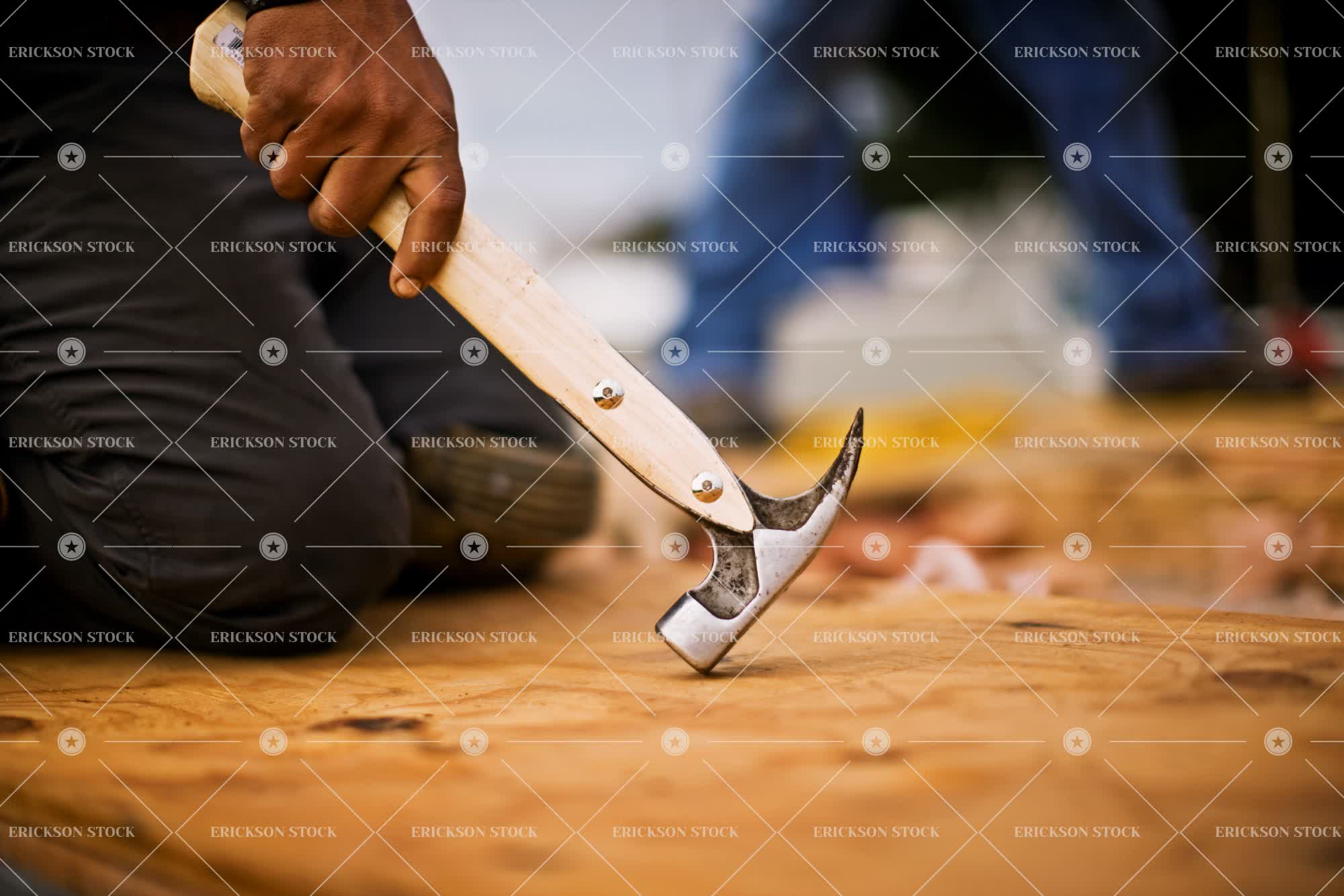 Tags adult, at work, building, construction, construction site, construction worker, cropped, day, develop, hammer, hammering, hammers, hold, holding, horizontal, incomplete, kneel, kneeling, kneels, male, man, one person, outdoor, outdoors, outside, part of, person, place of work, selective focus, site, tool, tools, unfinished, wood, wooden, work, worker, working