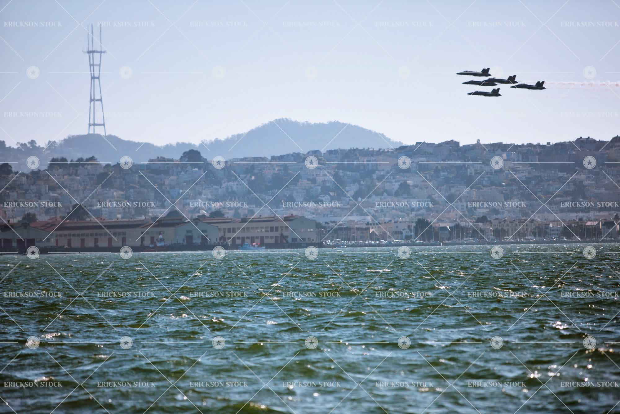 Jet planes flying in formation over San Francisco
