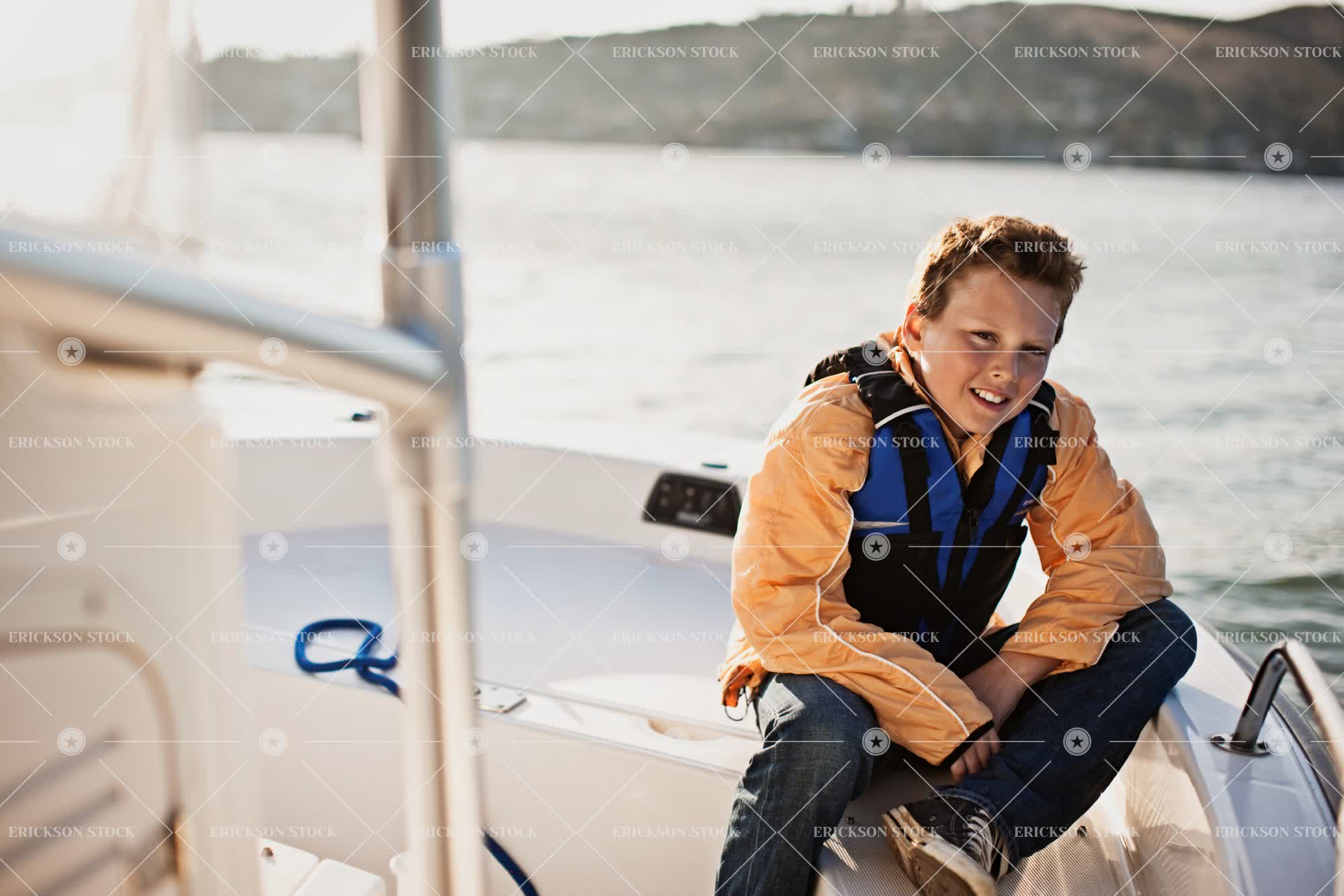 Tags boat, boy, caucasian, child, day, elementary age, Eye contact, happiness, happy, horizontal, kid, kids, leisure, leisure activities, leisure activity, life jacket, life jackets, lifevest, lifevests, look at camera, looking at camera, male, nautical vessel, nautical vessels, ocean, oceans, one person, outdoor, outdoors, outside, person, pre-adolescent, pre-adolescents, Pre-teen, pre-teens, preteen, preteens, Protective clothing, recreation, recreational pursuit, recreational pursuits, sea, seas, selective focus, sit, sitting, smile, smiling, three quarter length, transport, Transportation, tween, water