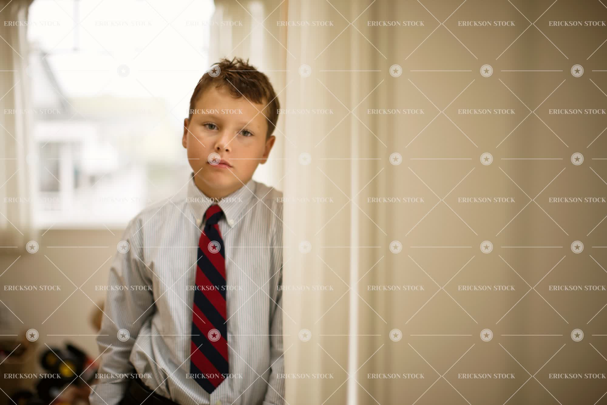 Tags blank expression, boy, brunette, caucasian, child, copy space, day, elementary age, half length, home, home interior, home interiors, homes, horizontal, house, house interior, house interiors, houses, indoor, indoors, inside, interior, interiors, kid, kids, lean, leaning, leans, male, negative space, one person, people, person, portrait, Portraits, selective focus, shirt, shirt and tie, stripe, striped, stripes, stripy, tie, waist up