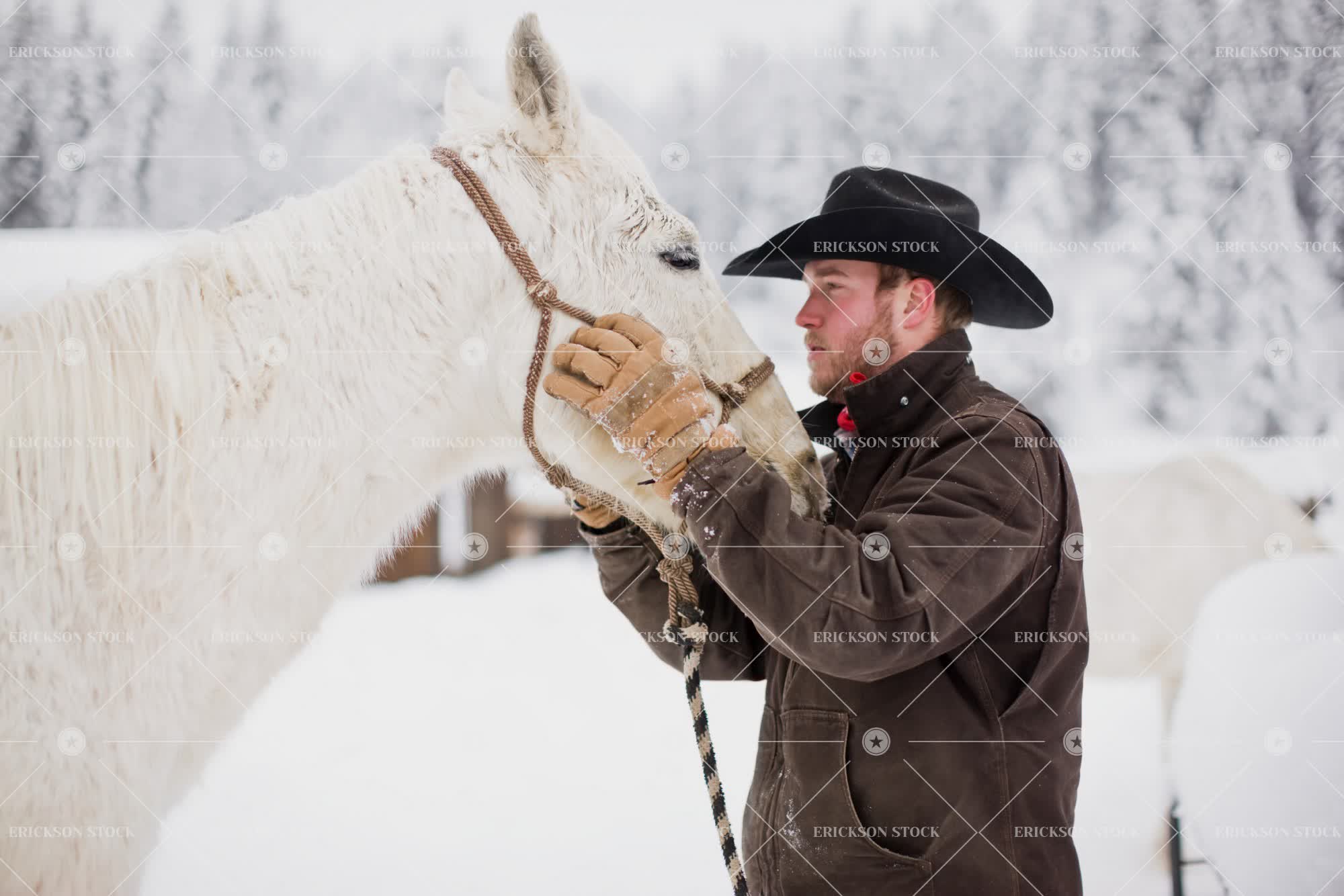 Tags adjust, adult, affectionate, american, animal, bridle, caucasian, chill, cold, country, countryside, cowboy, day, farm worker, farm workers, farmhand, farmhands, half length, horizontal, horse, horse riding, horseback riding, horses, leisure, leisure activities, leisure activity, male, man, mid adult, one animal, one person, outdoor, outdoors, outside, patting, person, pet, pets, petting, preparation, prepare, preparing, ranch, ranches, recreation, recreational pursuit, recreational pursuits, riding, rural, rural life, selective focus, Side view, snow, snowfall, stroke, strokes, stroking, waist up, winter, wintry, worker, workers, working, young adult