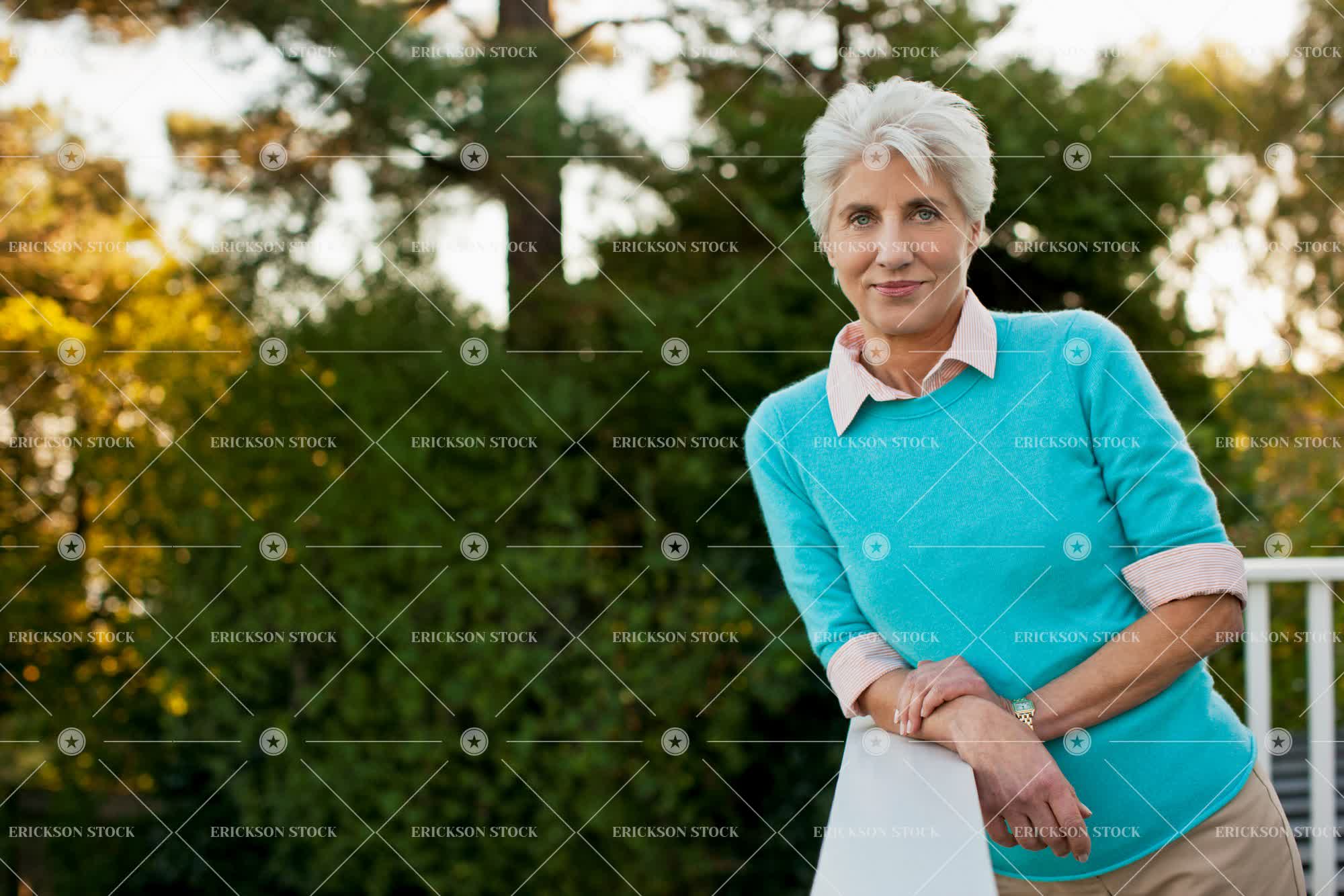 Tags adult, balcony, caucasian, day, deck, elderly, Eye contact, female, gray hair, grey hair, hand on wrist, horizontal, jersey, jerseys, jumper, jumpers, lean, leaning, leans, look at camera, looking at camera, mature adult, mid adult, old, one person, outdoor, outdoors, outside, people, person, portrait, Portraits, pullover, pullovers, railing, railings, selective focus, senior adult, short hair, sweater, sweaters, three quarter length, top, tops, touching wrist, Tree, trees, woman