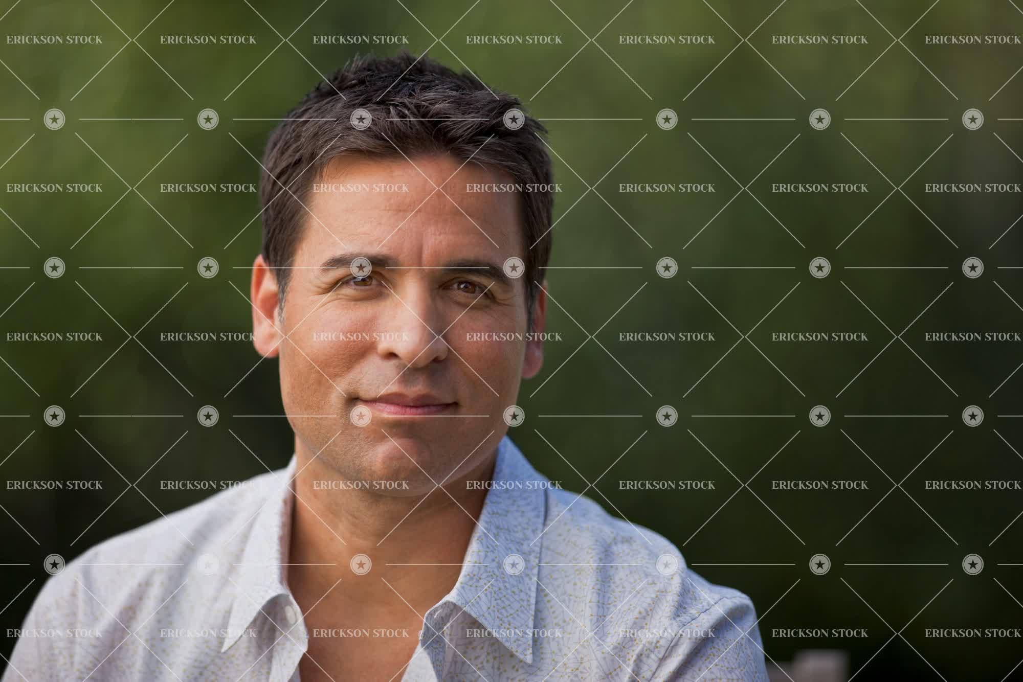 Tags adult, brunette, button down shirt, collared shirt, Eye contact, focus on foreground, garden, gardens, head, head & shoulders, head and shoulders, head shot, headshot, horizontal, latin american, look at camera, looking at camera, male, man, mid adult, non-urban, one person, outdoor, outdoors, outside, Park, parks, people, person, portrait, Portraits, public park, public parks, public space, public spaces, selective focus, shirt, shirts, shoulders