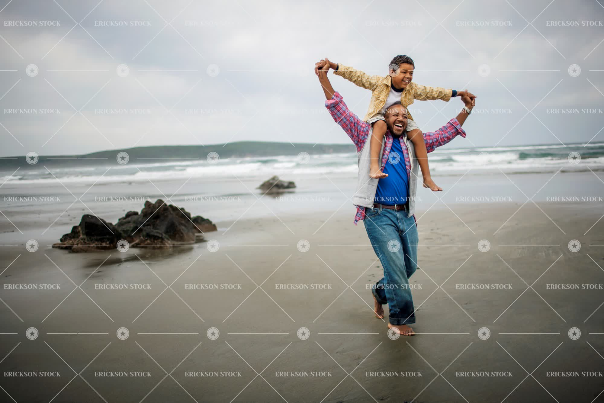 Tags adult, african american, arm outstretched, bald, balding, barefoot, beach, beard, blue jeans, boy, brunette, button down shirt, casual clothes, cheerful, child, coast, collared shirt, copy space, delight, denim, elementary age, enjoyment, facial hair, family, father, focus on foreground, full length, Fun, hand in hand, happiness, happy, having fun, hold hand, hold hands, holding hand, Holding hands, horizontal, jeans, joy, joyful, leisure, leisure activities, leisure activity, look away, looking away, love, loving, male, man, mature adult, mid adult, negative space, no hair, ocean, oceans, outdoor, outdoors, outside, parent, parents, people, person, recreation, recreational pursuit, recreational pursuits, sand, sandy, sea, seas, seaside, selective focus, shirt, shirts, shore, shoreline, shores, Shorts, smile, smiling, son, two people, vest, vests, Watch, water, weekend activities, weekend activity, young adult