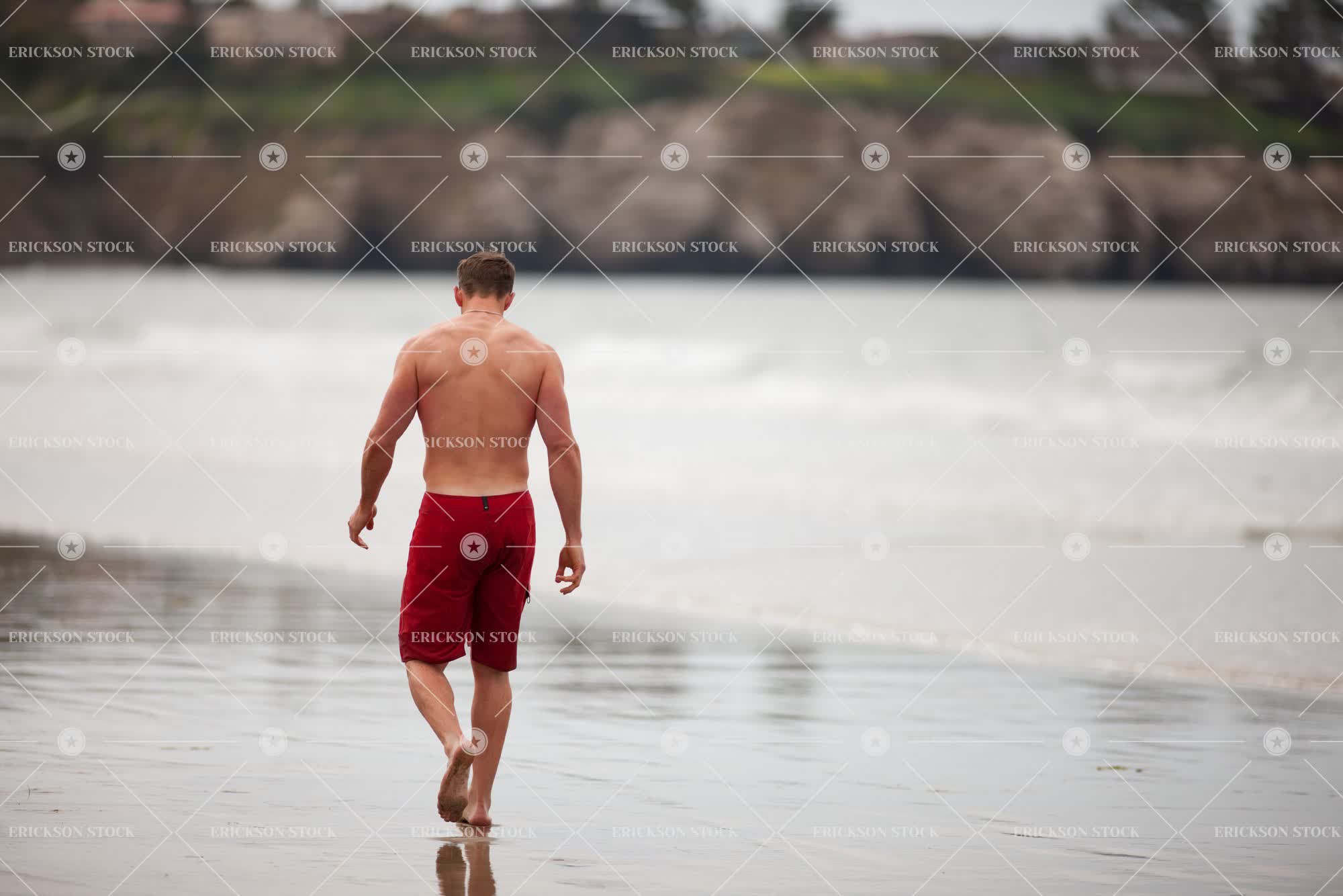 Tags adult, back, back view, bare chested, beach, blond, caucasian, coast, copy space, day, full length, horizontal, male, man, mid adult, motion, negative space, ocean, oceans, one person, outdoor, outdoors, outside, people, person, rear, rear view, sea, seas, seaside, selective focus, semi dress, shirtless, shore, shoreline, shores, surf, towhead, walk, Walking, walks, water, wave, waves, young adult
