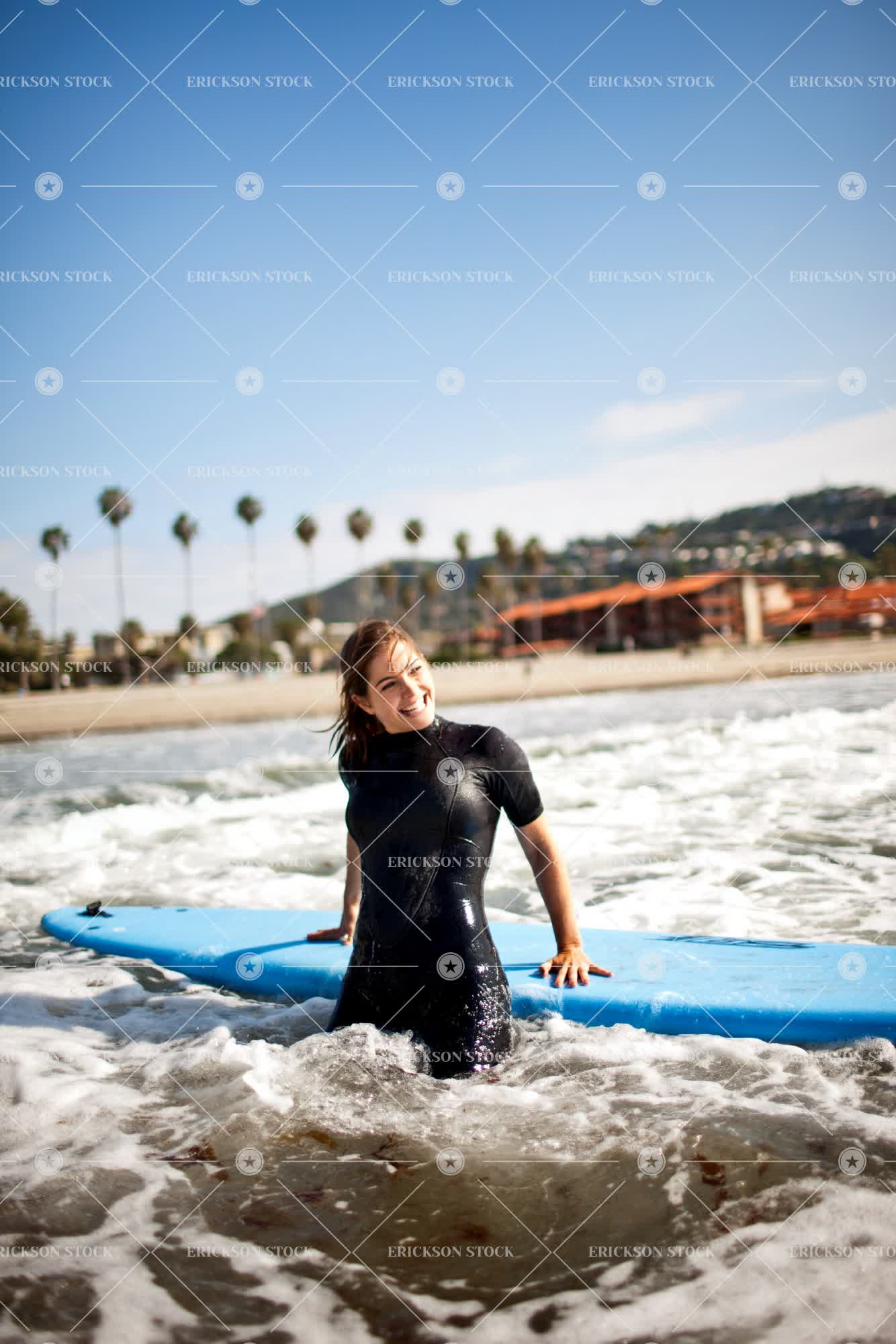 Tags adult, attractive, balance, beach, beautiful, brunette, caucasian, cheerful, coast, copy space, day, delight, enjoyment, female, good looking, gorgeous, grin, grinning, grins, happiness, happy, joy, joyful, laughing, leisure, leisure activities, leisure activity, motion, negative space, ocean, oceans, one person, outdoor, outdoors, outside, people, person, pretty, recreation, recreational pursuit, recreational pursuits, sea, seas, seaside, selective focus, shore, shoreline, shores, Skill, smile, smiling, splash, splashes, splashing, sport, Sports, spray, spraying, sprays, surf, Surfboard, surfboards, Surfer, surfers, Surfing, surfs, teenager, three quarter length, toothy smile, vertical, water, water sport, wave, waves, wetsuit, wetsuits, woman, young adult