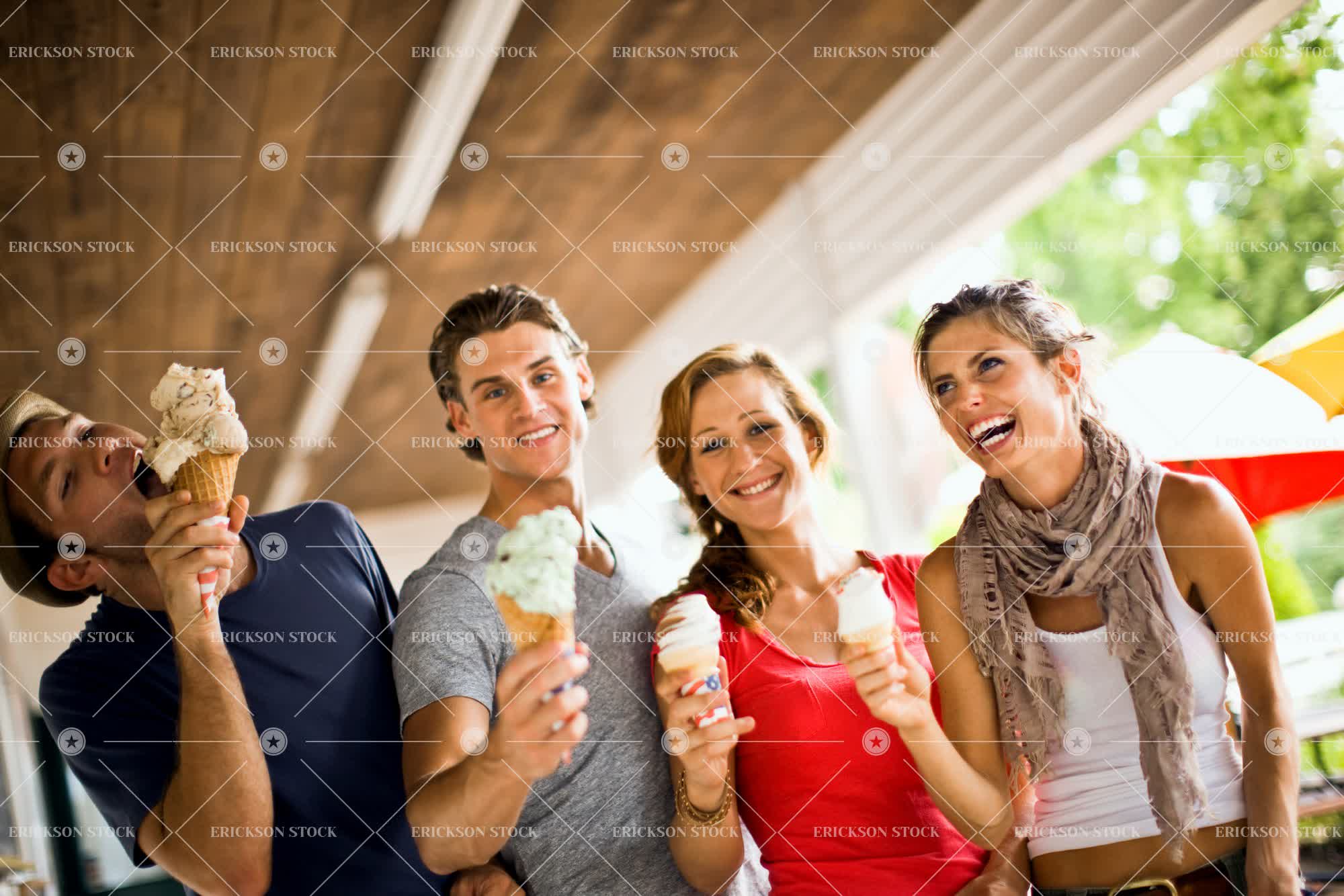 Friends eating giant ice creams.