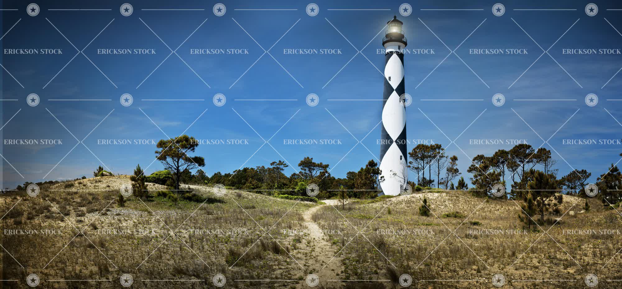 Tags architectural exterior, architecture, assist, beautiful, black, building, cape lookout, diamond, direction, exterior, guidance, guiding, horizontal, illuminated, Landscape, landscapes, Lighthouse, lighthouses, majestic, nature, nautical, navigation, nobody, north carolina, obx, outdoor, outdoors, outerbanks, outside, panorama, panoramic, pattern, patterned, patterns, rolling landscape, Safety, scenery, scenic, scenics, Tower, towers, Tree, trees, warning, white