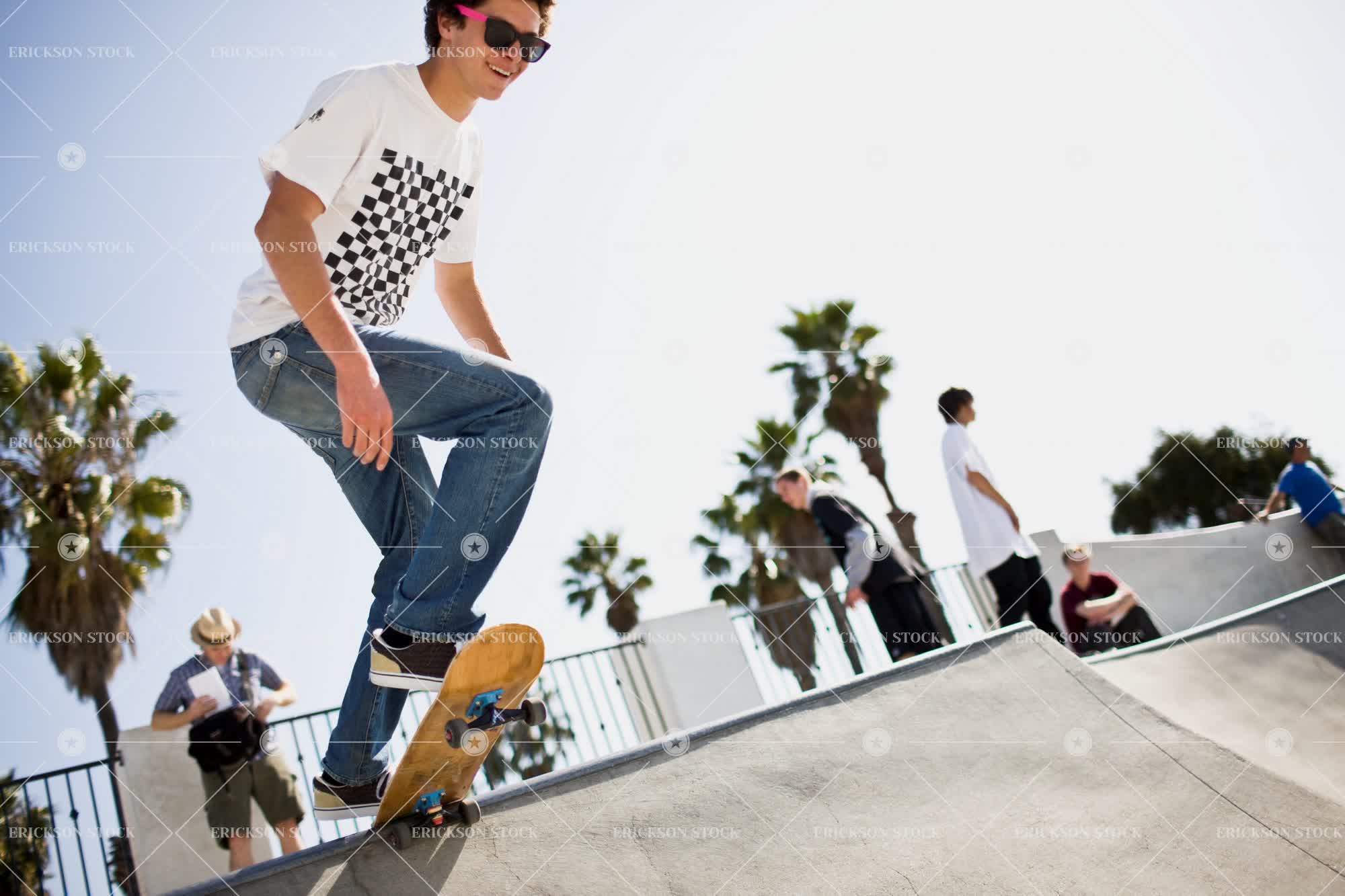 Tags adult, at the edge, background people, balance, boy, canted angle, caucasian, cool, copy space, copy space top, day, edge, enjoyment, focus on foreground, full length, Fun, happiness, happy, having fun, horizontal, individuality, leisure, leisure activities, leisure activity, low angle, low angle view, male, motion, negative space, negative space top, oblique angle, one person, outdoor, outdoors, outside, Park, parks, people, people in the background, person, recreation, recreational pursuit, recreational pursuits, selective focus, skate park, skate parks, skate ramp, skate ramps, skateboard, skateboard bowl, skateboard bowls, skateboard park, skateboard parks, skateboard ramp, skateboard ramps, skateboarder, skateboarders, skateboarding, skateboards, smile, smiling, sport, teenage boy, teenager, tilt, tilted angle, young adult