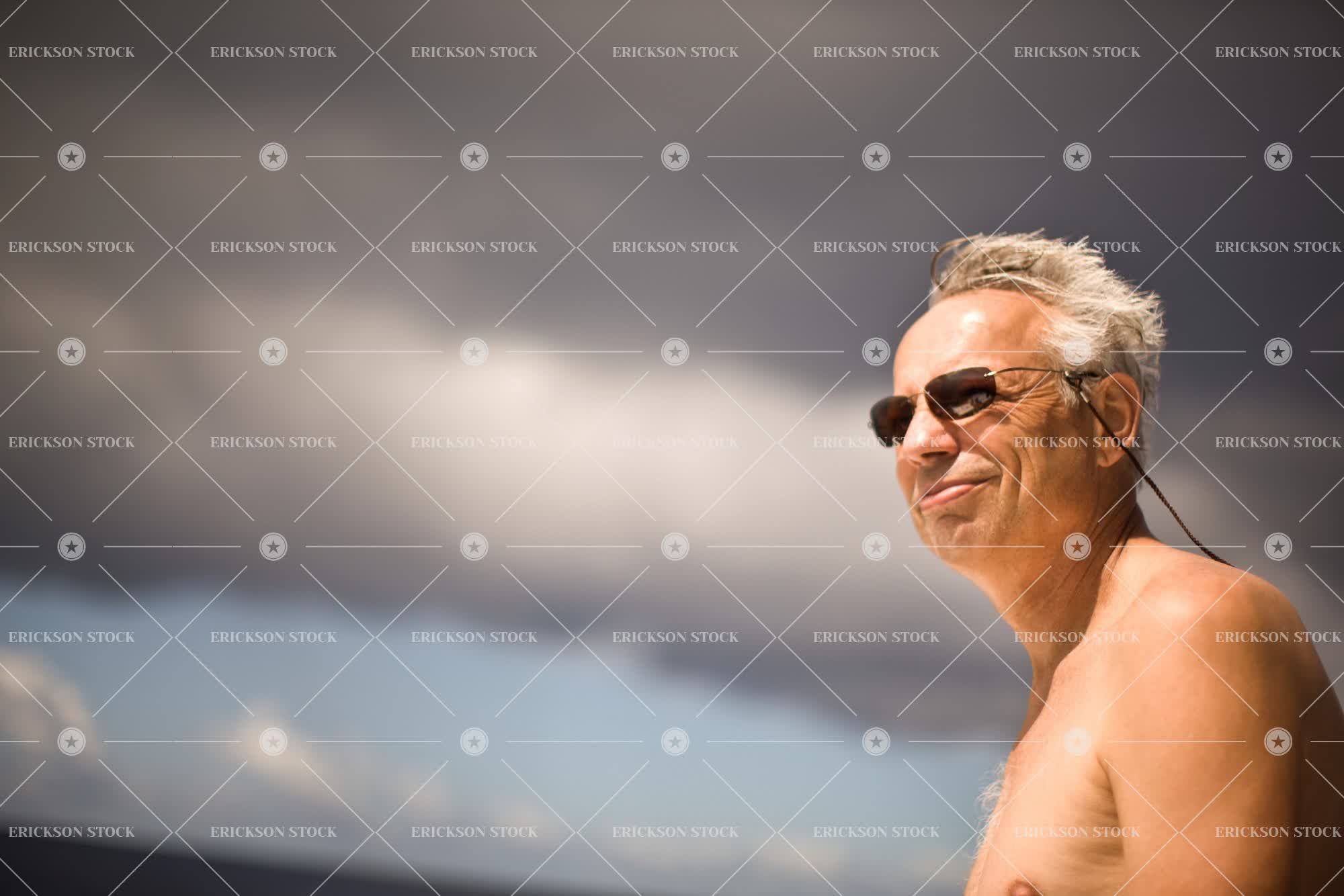 Tags adult, bare chested, caucasian, cloud, copy space, day, elderly, head, head & shoulders, head and shoulders, head shot, headshot, horizontal, look at view, looking at view, male, man, mature adult, mid adult, negative space, old, one person, outdoor, outdoors, outside, people, person, selective focus, semi dress, semi dressed, senior adult, shades, shirtless, shoulders, smiling, sunglasses, topless