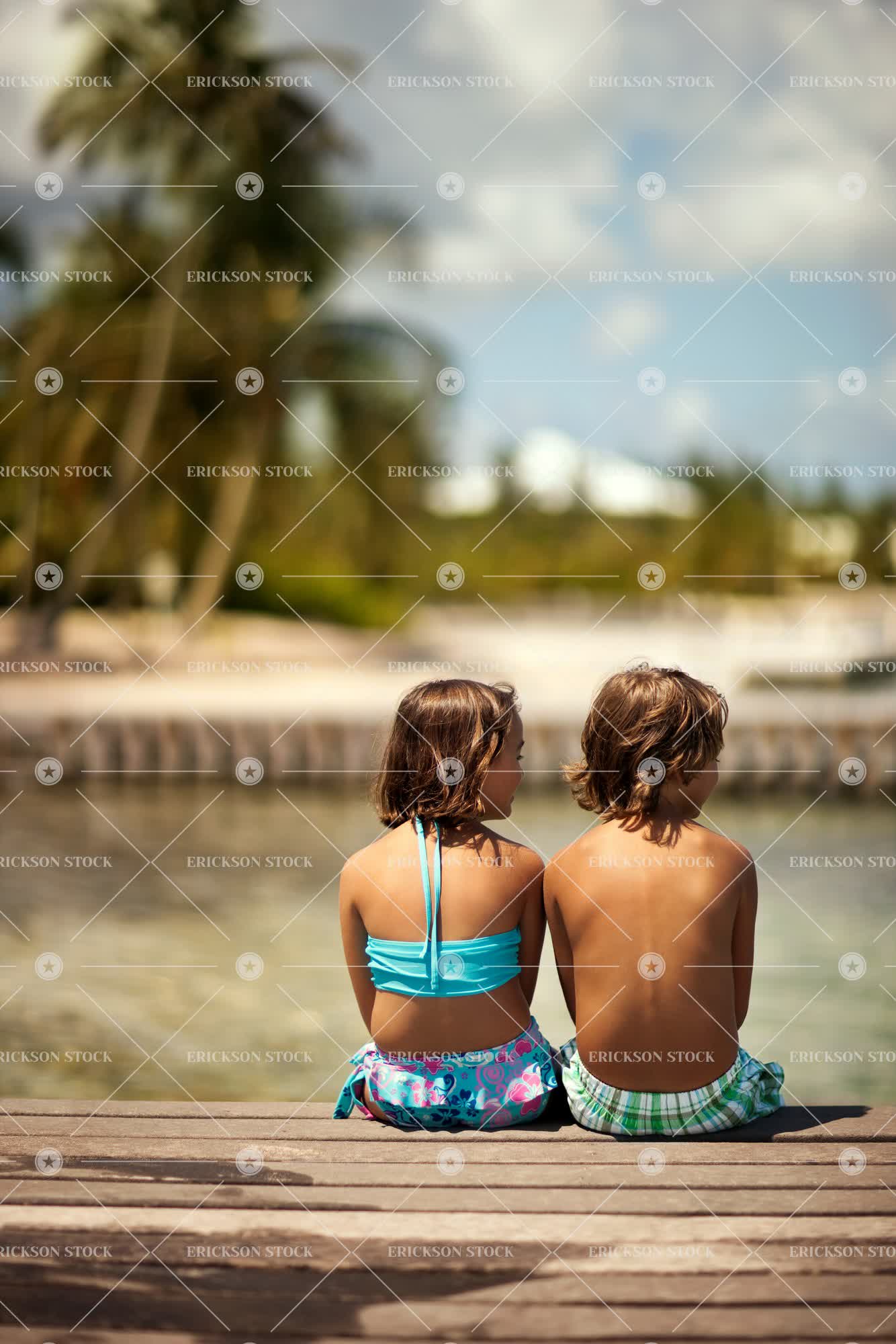 Tags back, back view, bare chested, bathing suit, beach, bond, boy, brother, brunette, caucasian, child, coast, day, elementary age, family, female, focus on foreground, Fun, getting away from it all, girl, girls, half length, happiness, happy, having fun, holiday, holidays, jetties, jetty, kid, kids, leisure, leisure activities, leisure activity, male, next to, ocean, oceans, outdoor, outdoors, outside, people, person, Pier, piers, rear, rear view, recreation, recreational pursuit, recreational pursuits, relax, Relaxation, relaxed, relaxes, relaxing, sea, seas, seaside, selective focus, semi dress, shirtless, shore, shoreline, shores, short hair, sibling, siblings, side by side, sister, sisters, sit, sits, sitting, structure, structures, Summer, summery, swimming trunks, swimsuit, swimwear, together, togetherness, tourist destination, tourist destinations, travel, travel destination, travel destinations, tropical, tropical climate, two people, Vacation, vacations, vertical, waist up, warm, warmth, water, Wharf, wharves, wood, wooden