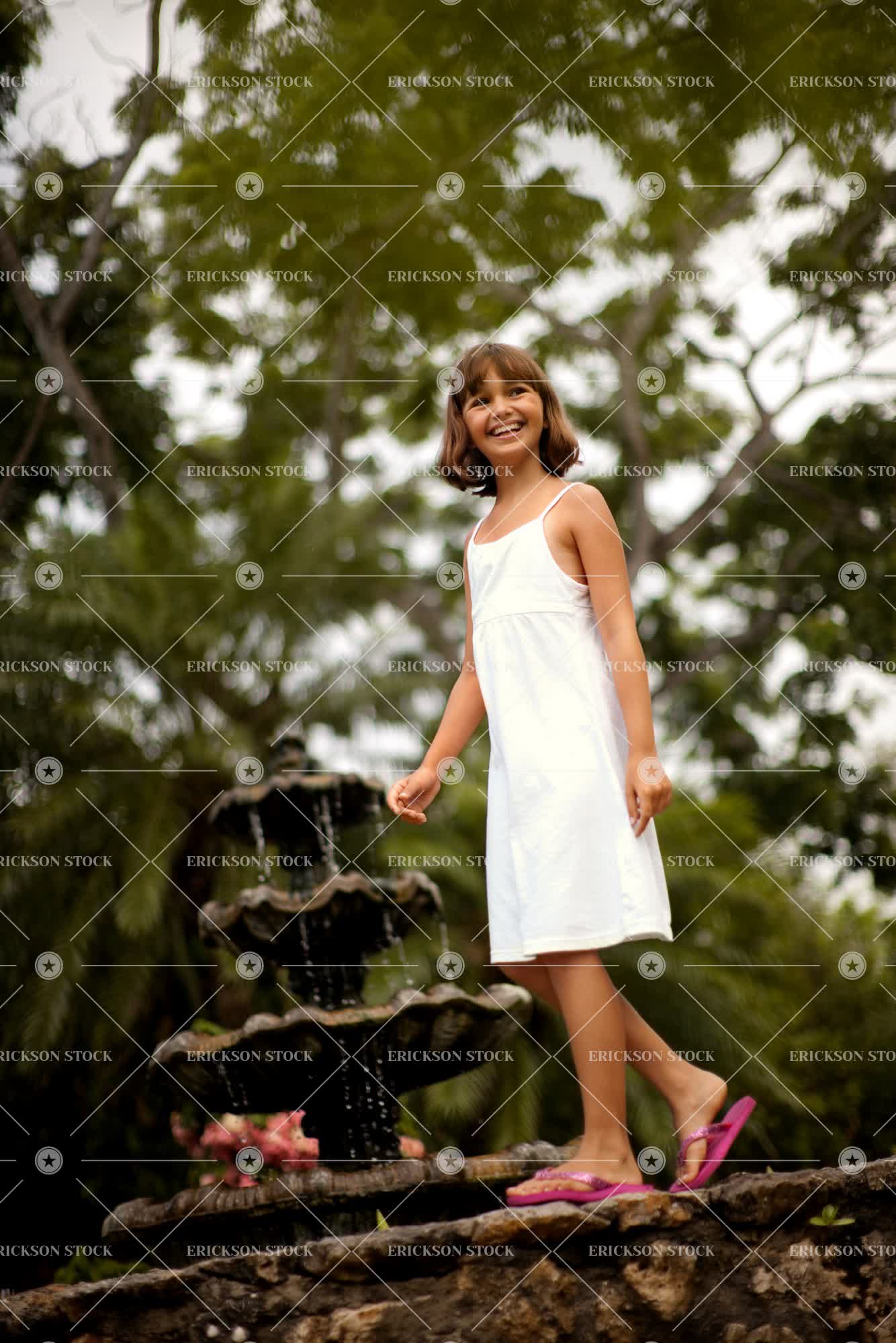 Tags balance, brunette, caucasian, cheerful, child, day, delight, discover, dress, elementary age, enjoyment, exploration, exploring, female, flowing water, fountain, fountains, full length, Fun, garden, gardens, girl, girls, grin, grinning, grins, Growth, happiness, happy, having fun, joy, joyful, kid, kids, leisure, leisure activities, leisure activity, low angle, low angle view, natural, nature, one person, outdoor, outdoors, outside, palm, palm tree, palm trees, palms, people, person, plant, plants, play, Playful, Playing, plays, pond, ponds, recreation, recreational pursuit, recreational pursuits, selective focus, smile, smiling, stone, stone wall, stone walls, stones, stonewall, stonewalls, sundress, sundresses, toothy smile, Tree, trees, vertical, water, water feature, water features, water fountain, water fountains