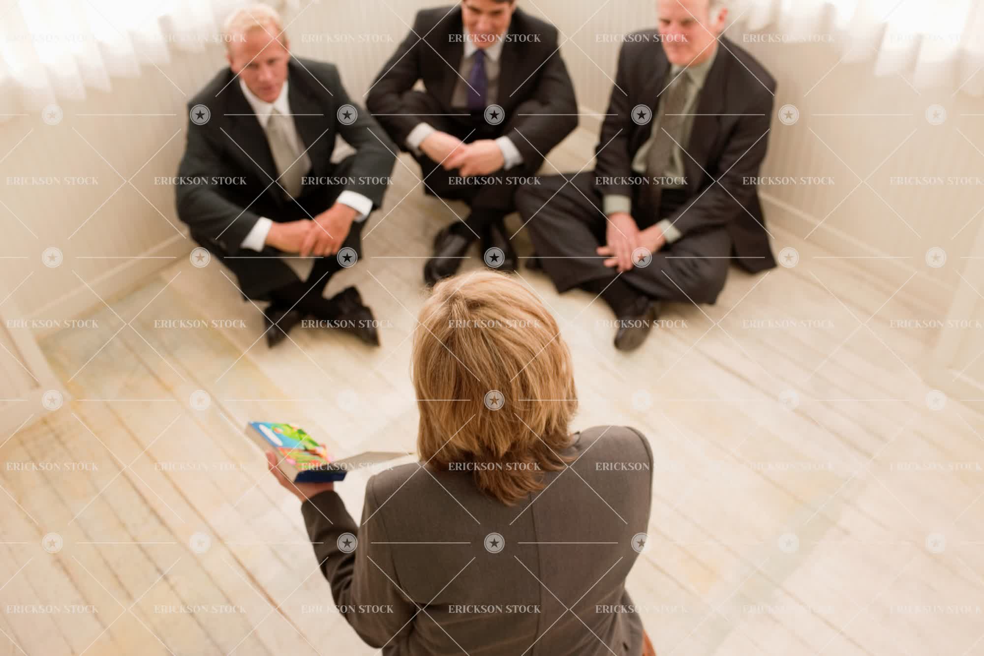 Businesswoman reading businessmen a book