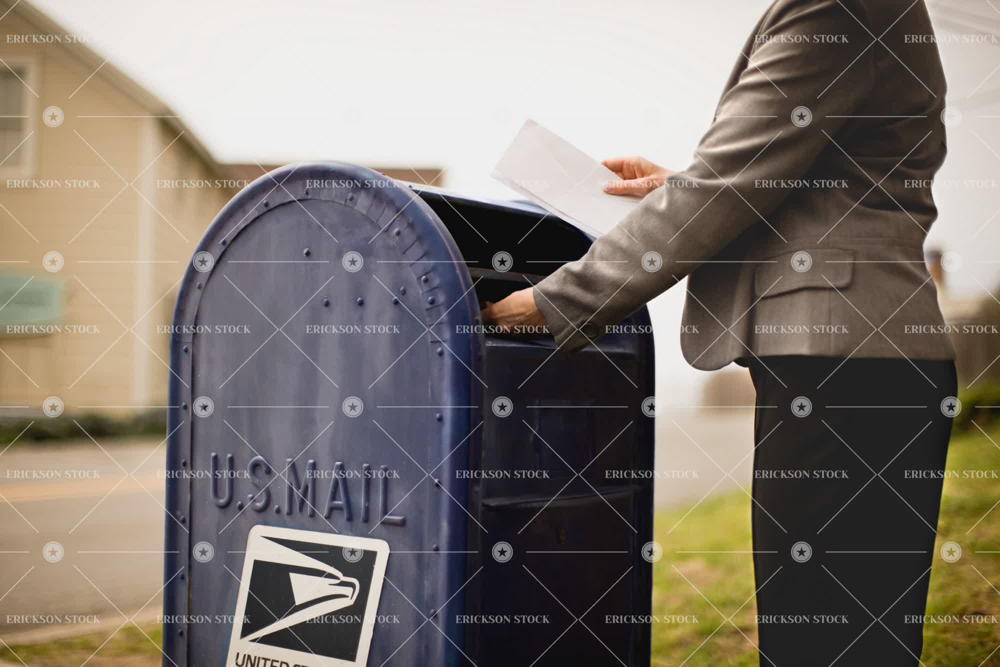 Tags adult, communicate, correspondence, cropped, day, envelope, envelopes, female, horizontal, letter, letters, low section, mail, mailbox, mailboxes, one person, outdoor, outdoors, outside, part of, person, post, post box, post boxes, postal, posting, selective focus, sending, woman