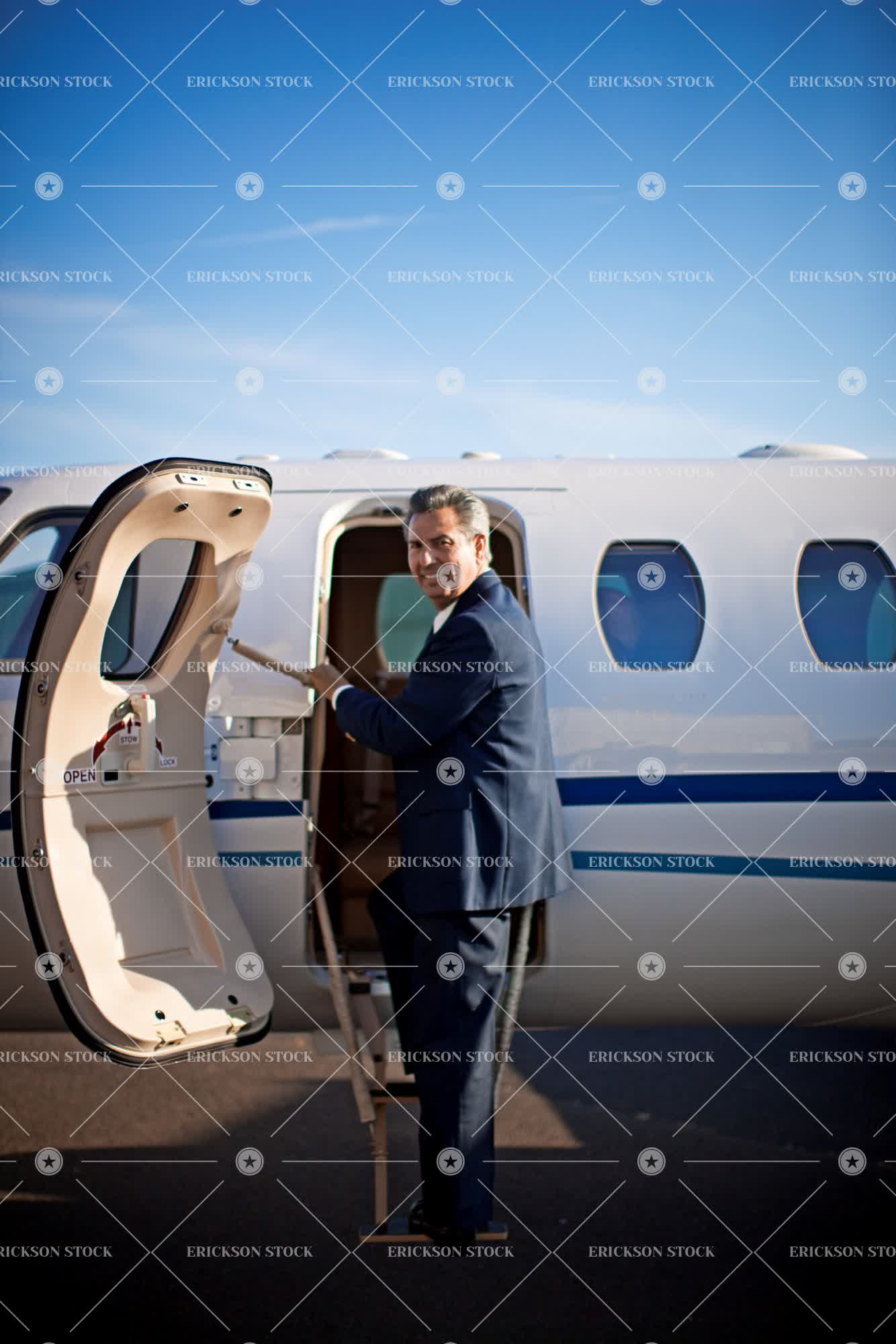 Businessman about to board a private jet