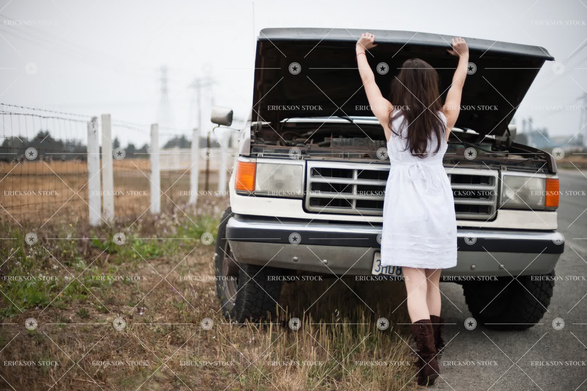 Tags adult, adversity, back, back view, boots, breakdown, brown, car, caucasian, day, engine, female, freedom, full length, getting away from it all, horizontal, journey, journeys, leisure, leisure activities, leisure activity, misfortune, one person, outdoor, outdoors, outside, person, pick up truck, pick up trucks, pick-up, pick-ups, pickup truck, pickup trucks, problem, problems, rear, rear view, recreation, recreational pursuit, recreational pursuits, road, road trip, road trips, roads, selective focus, stranded, street, streets, struggle, transport, Transportation, travel, ute, utes, vehicle, vehicles, white dress, woman, young adult