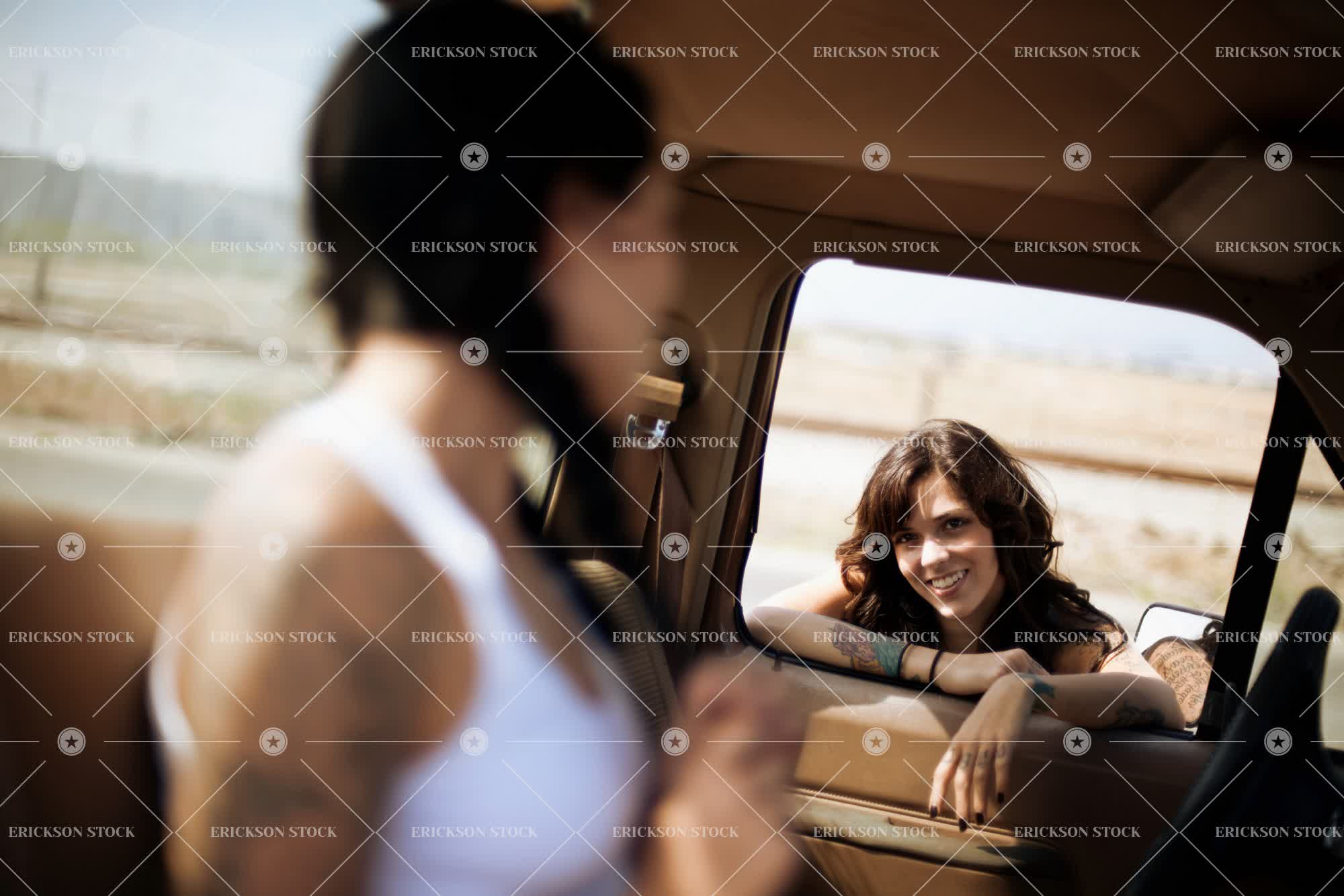 Tags adult, american, americana, attractive, beautiful, brunette, car, car interior, casual clothes, caucasian, cheerful, classic, classic car, cool, country road, couple, day, delight, enjoyment, fashionable, female, flirt, flirtatious, flirting, flirts, freedom, friend, friends, friendship, funky, gay, gay couple, gay couples, getting away from it all, good looking, happiness, happy, head, head & shoulders, head and shoulders, head shot, headshot, hip, homosexual couple, homosexual couples, horizontal, individuality, ink, inked, inside, inside of, journey, journeys, joy, joyful, lean, leaning, leans, leisure, leisure activities, leisure activity, lesbian, lesbian couple, lesbian couples, lesbians, mid adult, outdoor, outdoors, outside, partner, people, person, pick up truck, pick up trucks, pick-up, pick-ups, pickup truck, pickup trucks, pretty, recreation, recreational pursuit, recreational pursuits, relationship, relationships, remote, remoteness, retro, road, road trip, road trips, roads, rural road, rural roads, selective focus, shoulders, sit, sitting, smile, smiling, street, streets, tank top, tank tops, tattoo, tattoos, together, togetherness, transport, Transportation, travel, trendy, two people, vehicle, vehicle interior, vehicles, Vintage, vintage car, vintage cars, window, windows, woman, young adult