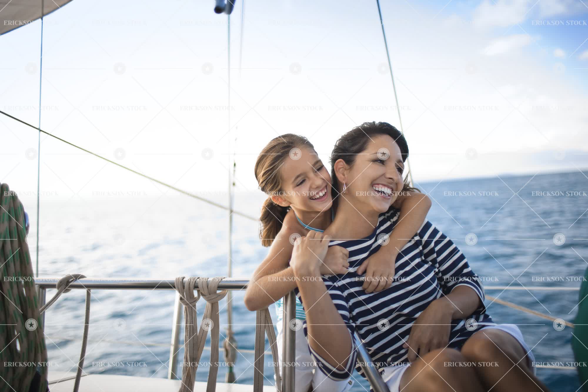 Mother and daughter on sailboat
