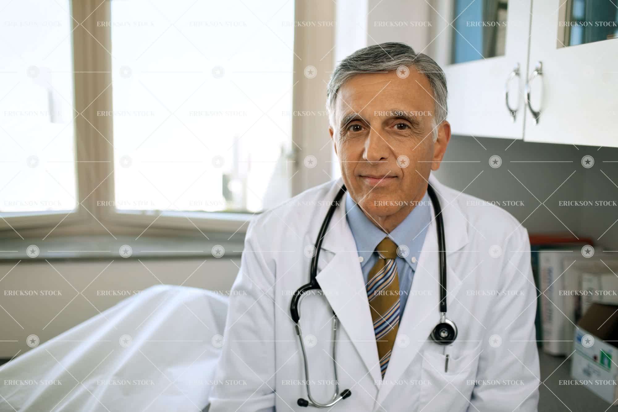 Tags adult, doctor, doctor's office, elderly, expert, expertise, experts, Eye contact, gray hair, grayhaired, grey hair, half length, health, healthcare, indoor, indoors, inside, job, jobs, lab coat, lab coats, look at camera, looking at camera, male, man, mature adult, md, medical, medical practitioner, medical practitioners, medicine, occupation, occupations, old, one person, people, person, physician, physicians, place of work, portrait, Portraits, selective focus, senior adult, serious, seriously, sit, sits, sitting, specialist, specialists, stethoscope, stethoscopes, waist up, work, working