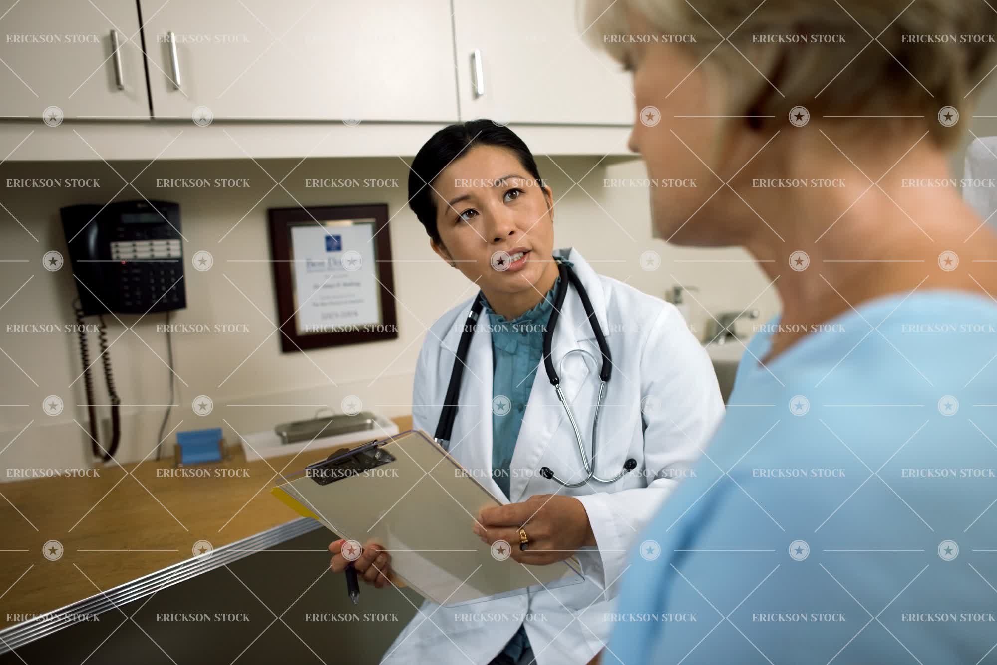Tags adult, asian, authority, black hair, brunette, caucasian, doctor, doctor's office, exam, examination, exams, expert, expertise, experts, face to face, facing each other, female, health, healthcare, hospital, hospital gown, hospital gowns, hospitals, ill, illness, indoor, indoors, inside, job, jobs, lab coat, lab coats, looking at each other, mature adult, md, medical, medical exam, medical practitioner, medical practitioners, medicine, mid adult, note, note pad, note pads, notepad, notepads, notes, noting, occupation, occupations, patient, patients, people, person, physician, physicians, place of work, problems, selective focus, senior adult, sick, sickness, specialist, specialists, stethoscope, stethoscopes, take note, taking notes, two people, woman, work, working, write, writing, young adult