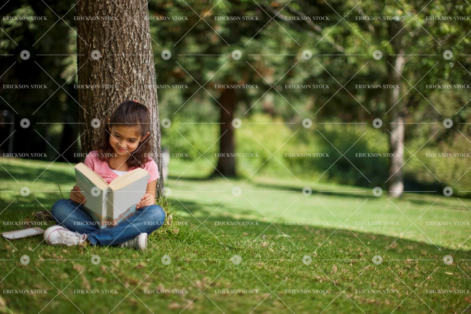 Tags backyard, below, blue jeans, book, casual clothes, child, content, cross-legged, day, denim, elementary age, female, focus on foreground, front or back yard, frontyard, frontyards, full length, garden, gardens, girl, girls, grass, grassy, horizontal, jeans, kid, kids, lace up shoe, latin american, lawn, legs crossed, leisure, leisure activities, leisure activity, look down, looking down, medium length hair, nature, non-urban, one person, outdoor, outdoors, outside, Park, parks, people, person, pleased, public park, public parks, public space, public spaces, read, reading, recreation, recreational pursuit, recreational pursuits, selective focus, shoulder length hair, sit, sits, sitting, sneakers, sports shoes, trainers, Tree, tree trunk, tree trunks, trees, under, underneath, wavy hair, weekend activities, weekend activity