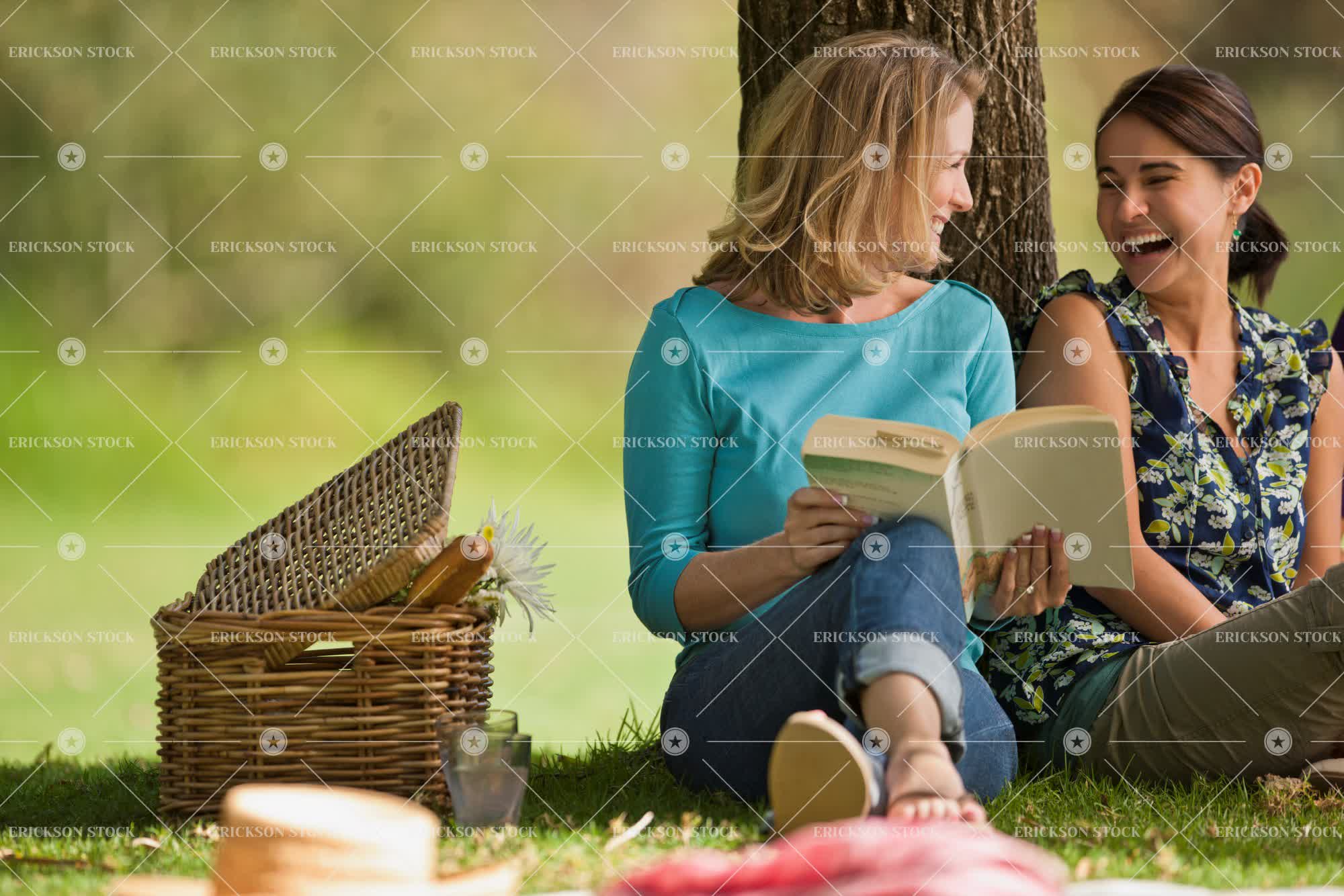 Tags adult, blond, blouse, blue jeans, bond, book, brunette, casual clothes, caucasian, cheerful, day, delight, denim, enjoyment, face to face, facing each other, female, flower, flowers, Food, friend, friends, friendship, full length, garden, gardens, getting away from it all, grass, grin, grinning, grins, hair back, hair tied up, happiness, happy, hold, holding, holds, horizontal, jeans, joy, joyful, latin american, laughing, leisure, leisure activities, leisure activity, looking at each other, lunch, mature adult, medium length hair, mid adult, natural, nature, non-urban, outdoor, outdoors, outside, Park, parks, people, person, picnic, picnic basket, picnic baskets, picnicking, picnics, public park, public parks, public space, public spaces, read, reading, recreation, recreational pursuit, recreational pursuits, relax, Relaxation, relaxed, relaxes, relaxing, selective focus, shirt, shirts, shoulder length hair, sit, sits, sitting, smile, smiling, three quarter length, together, togetherness, toothy smile, top, tops, Tree, tree trunk, tree trunks, trees, two people, vitality, weekend activities, weekend activity, woman