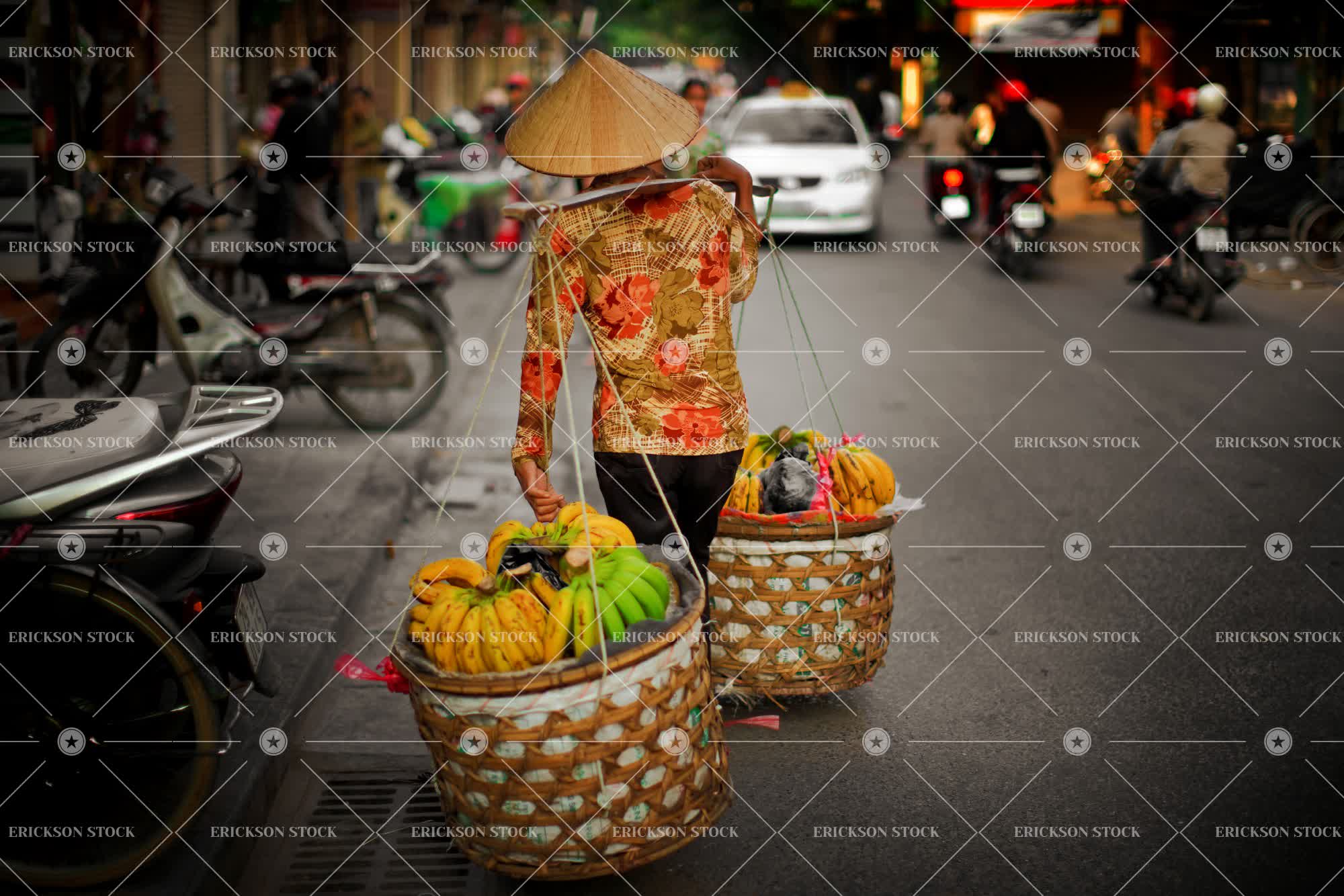 Tags abundance, adult, asia, asian, back, back view, background people, banana, basket, bike, blouse, car, carry, carry on shoulders, city, conical, day, female, Food, Food and drink, fresh, freshness, fruit, hat, hats, hawker, hawkers, horizontal, mature adult, mid adult, motorbike, motorbikes, motorcycle, motorcycles, one person, outdoor, outdoors, outside, people, people in the background, person, rear, rear view, road, roads, selective focus, sell, selling, strees, street, street scene, street scenes, streets, streetscape, streetscapes, three quarter length, tourist destination, tourist destinations, tradition, traditional, traditional culture, traditions, transport, Transportation, travel, travel destination, travel destinations, urban, urban scene, vehicle, vehicles, vendor, vendors, vietnam, vietnamese, vietnamese ethnicity, woman