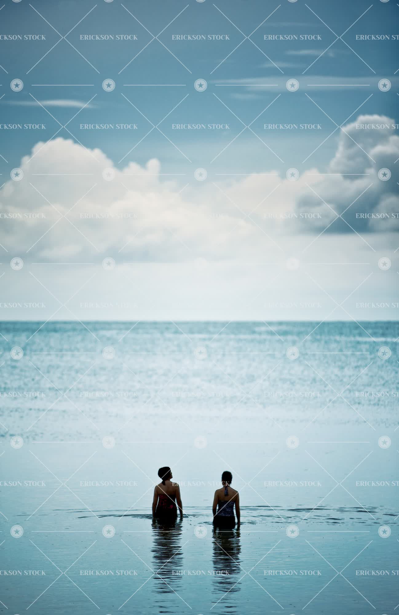 Tags adult, bathing suit, cloud, country, countryside, day, friend, friends, friendship, high angle, high angle view, leisure, leisure activities, leisure activity, ocean, oceans, people, person, recreation, recreational pursuit, recreational pursuits, reflected, reflecting, Reflection, reflections, reflective, rural, rural life, sea, seas, swim, swimmer, swimmers, swimming, swims, swimsuit, swimwear, teenager, three quarter length, together, togetherness, togs, two people, water, young adult