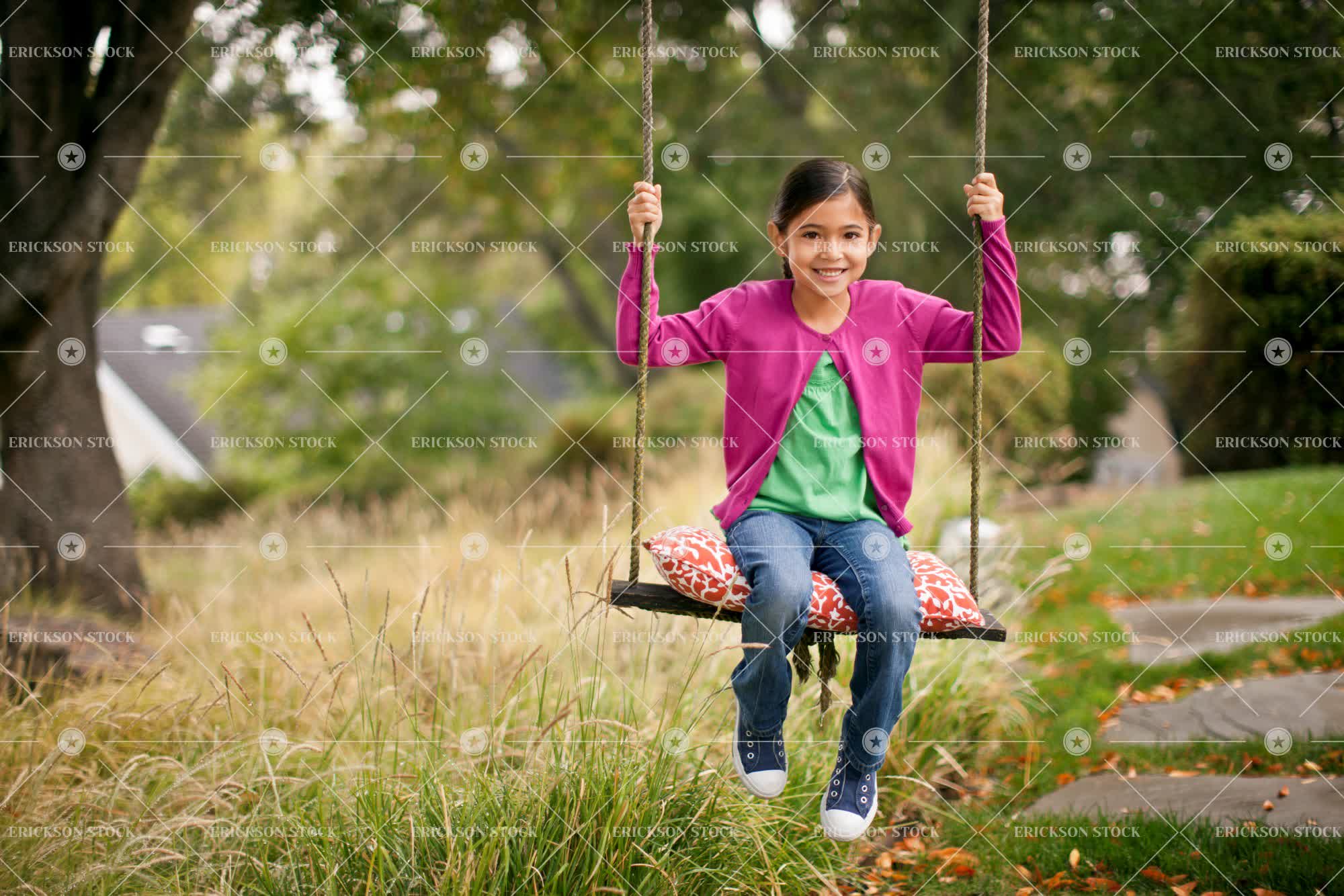 Tags backyard, bench, bench swing, blue jeans, brunette, cardigan, carefree, casual clothes, cheerful, child, day, delight, denim, elementary age, enjoyment, Eye contact, female, front or back yard, frontyard, frontyards, full length, Fun, garden, gardens, girl, girls, grass, grip, gripping, grips, happiness, happy, having fun, hold, holding, holds, horizontal, jeans, joy, joyful, kid, kids, lawn, leisure, leisure activities, leisure activity, look at camera, looking at camera, mixed race, mixed race person, one person, outdoor, outdoors, outside, people, person, play, Playful, Playing, plays, portrait, Portraits, recreation, recreational pursuit, recreational pursuits, selective focus, smile, smiling, Swing, swinging, swings