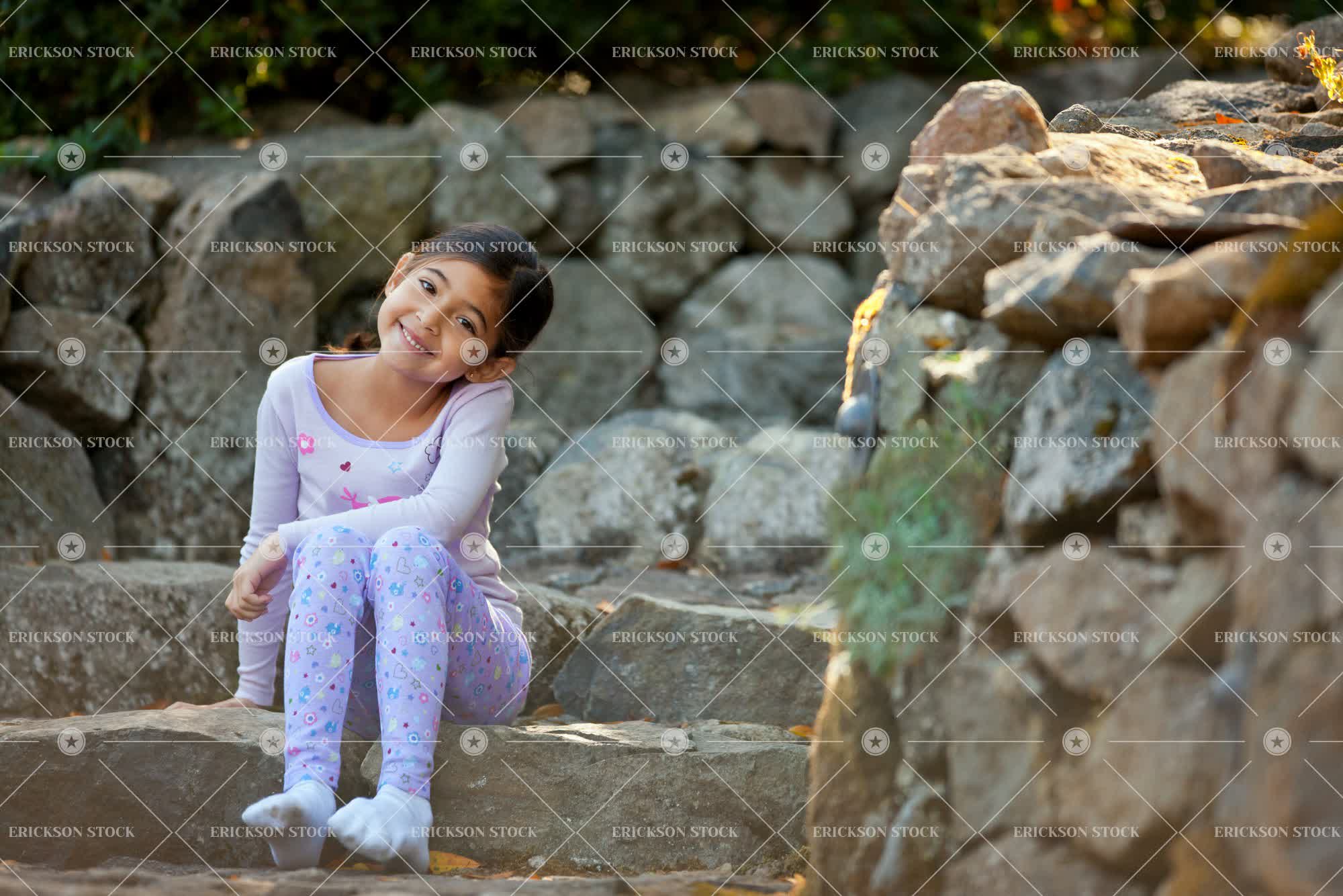 Tags backyard, brunette, cheerful, child, day, delight, elementary age, enjoyment, female, front or back yard, frontyard, frontyards, full length, garden, gardens, girl, girls, grass, happiness, happy, horizontal, joy, joyful, kid, kids, lawn, leisure activities, leisure activity, mixed race, mixed race person, one person, outdoor, outdoors, outside, Pajamas, people, person, pyjama, pyjamas, recreation, recreational pursuit, recreational pursuits, selective focus, sit, sitting, Sleepwear, smile, smiling