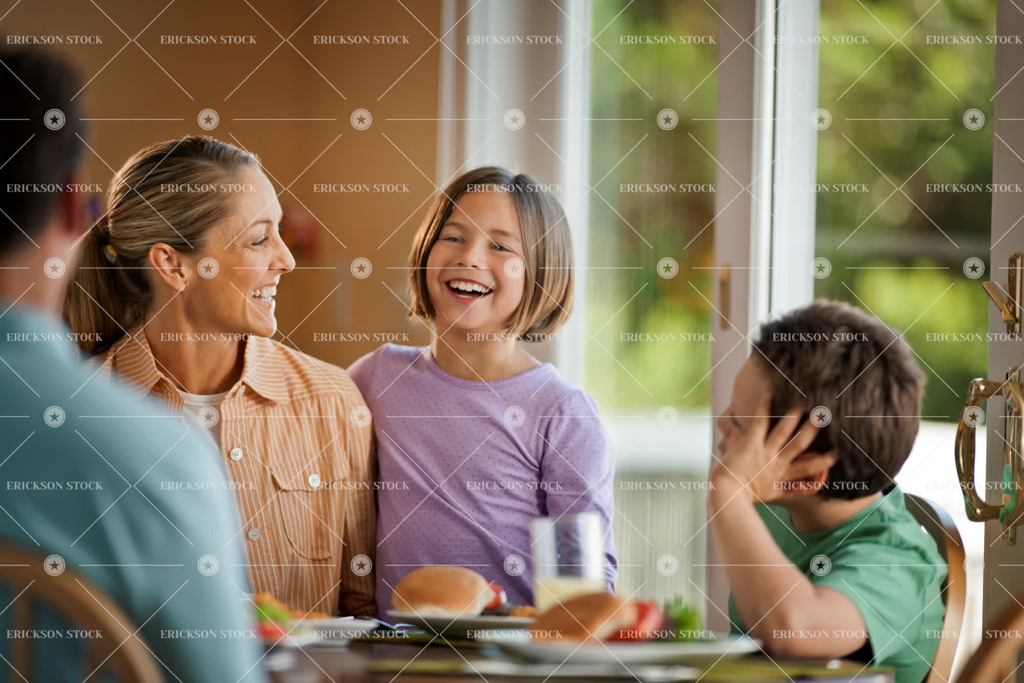 Tags adult, blond, bond, boy, brother, casual clothes, caucasian, cheerful, child, delight, dining room, dining table, elementary age, enjoyment, family, female, Food, Food and drink, Fun, girl, girls, group, half length, happiness, happy, having fun, home, home interior, home interiors, homes, horizontal, house, house interior, house interiors, houses, indoor, indoors, inside, interior, interiors, joy, joyful, kid, kids, leisure, leisure activities, leisure activity, male, mature adult, meal, meals, mid adult, mom, mother, mum, parent, parents, people, person, place setting, place settings, recreation, recreational pursuit, recreational pursuits, selective focus, sibling, siblings, sister, sisters, sit, sitting, small group of people, smile, smiling, table, Tables, together, togetherness, waist up, woman, young adult