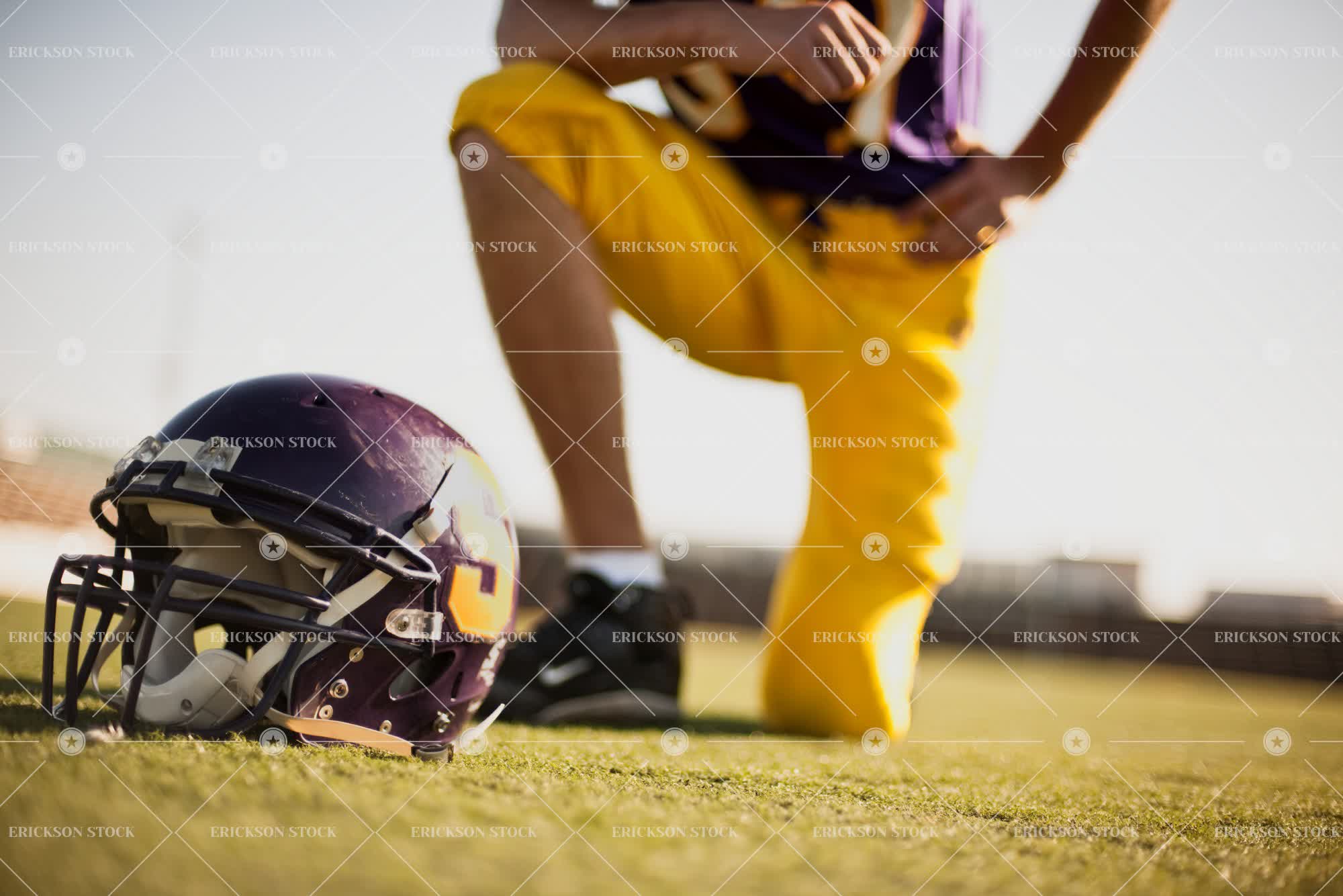Tags adult, ball, caucasian, cropped, day, football, football helmet, football helmets, football player, football players, helmet, helmets, horizontal, kneel, kneeling, kneels, leisure, leisure activities, leisure activity, low section, male, man, one person, outdoor, outdoors, outside, part of, people, person, protected, protection, recreation, recreational pursuit, recreational pursuits, selective focus, sport, Sports, sports uniform, sports uniforms, uniform, uniforms