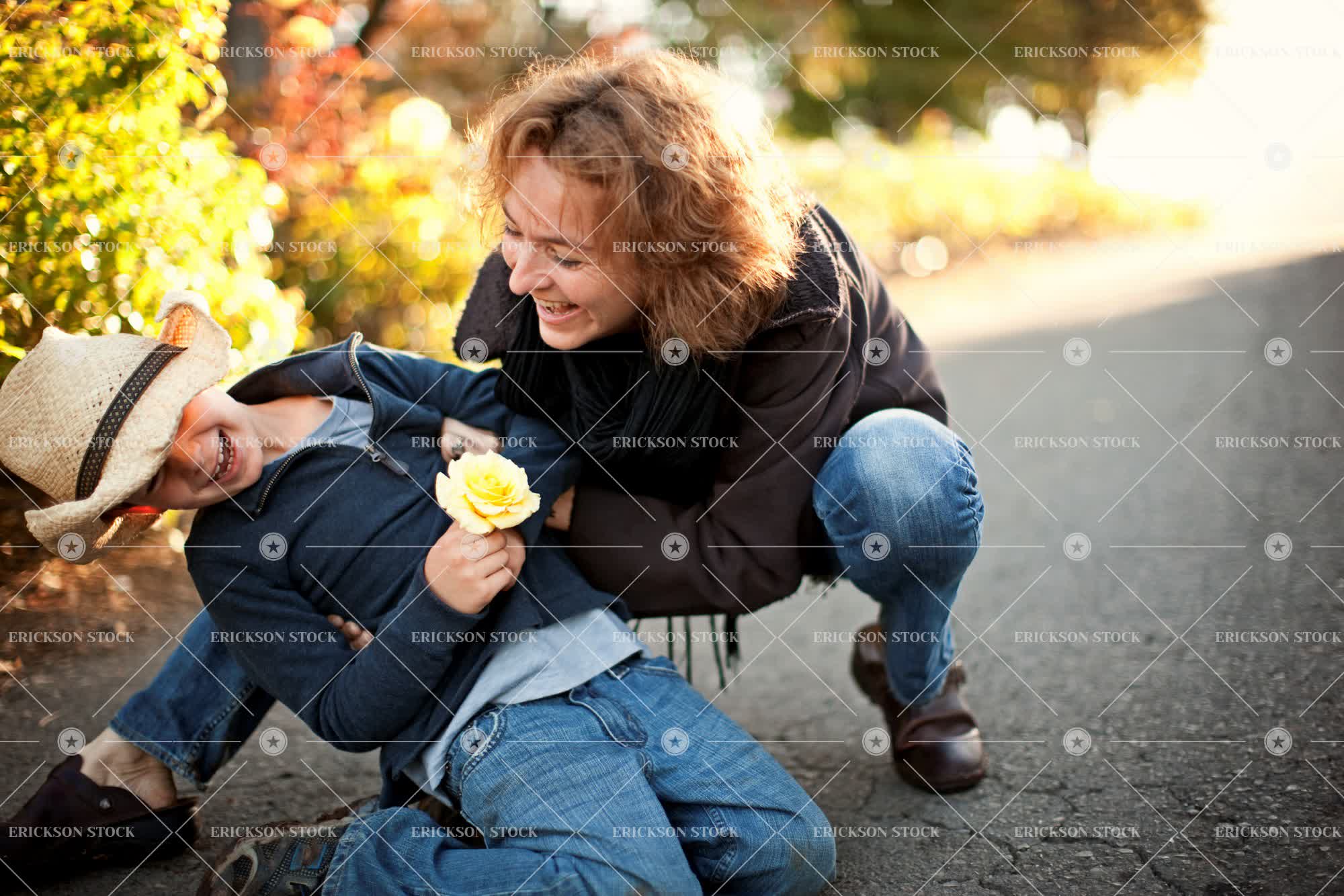 Tags adult, blue jeans, boy, casual clothes, caucasian, cheerful, child, copy space, copy space right, country, country road, countryside, crouch, day, delight, denim, driveway, elementary age, enjoyment, face to face, facing each other, family, female, flower, flowers, full length, Fun, grandchild, grandchildren, grandmother, grandmothers, grandparent, grandparents, grandson, grandsons, grin, grinning, grins, happiness, happy, hat, hats, having fun, horizontal, jeans, jersey, jerseys, joy, joyful, jumper, jumpers, kid, kids, kneel, kneeling, laughing, leisure, leisure activities, leisure activity, looking at each other, male, mature adult, mid adult, mom, mother, mum, nature, negative space, negative space right, outdoor, outdoors, outside, parent, parents, people, person, plant, pullover, pullovers, recreation, recreational pursuit, recreational pursuits, road, roads, rose, roses, rural, rural life, rural road, rural roads, selective focus, senior adult, smile, smiling, son, squat, Squatting, Straw hat, straw hats, sweater, sweaters, tickle, tickles, Tickling, together, togetherness, toothy smile, top, tops, two people, woman, yellow, yellow rose, yellow roses