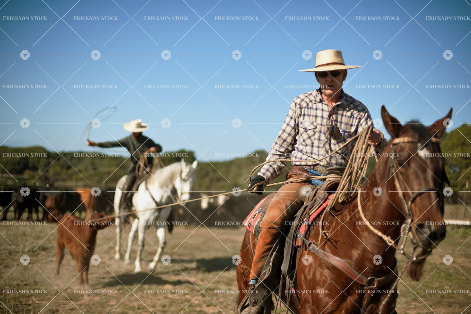 Tags adult, agriculture, animal, catch, cattle, caucasian, country, cow, cowboy, cowboy hat, day, farm, farms, front view, full length, group, group of animals, groups, hat, hats, herd, herding, herds, horizontal, horse, horse rider, horse riders, horse riding, horseback riding, horses, lasso, lassos, livestock, male, man, mature adult, mid adult, outdoor, outdoors, outside, people, person, ranch, rancher, ranchers, ranches, ranching, ride, rider, riders, rides, riding, rope, roping, rural, rural life, selective focus, swinging, towing, two people