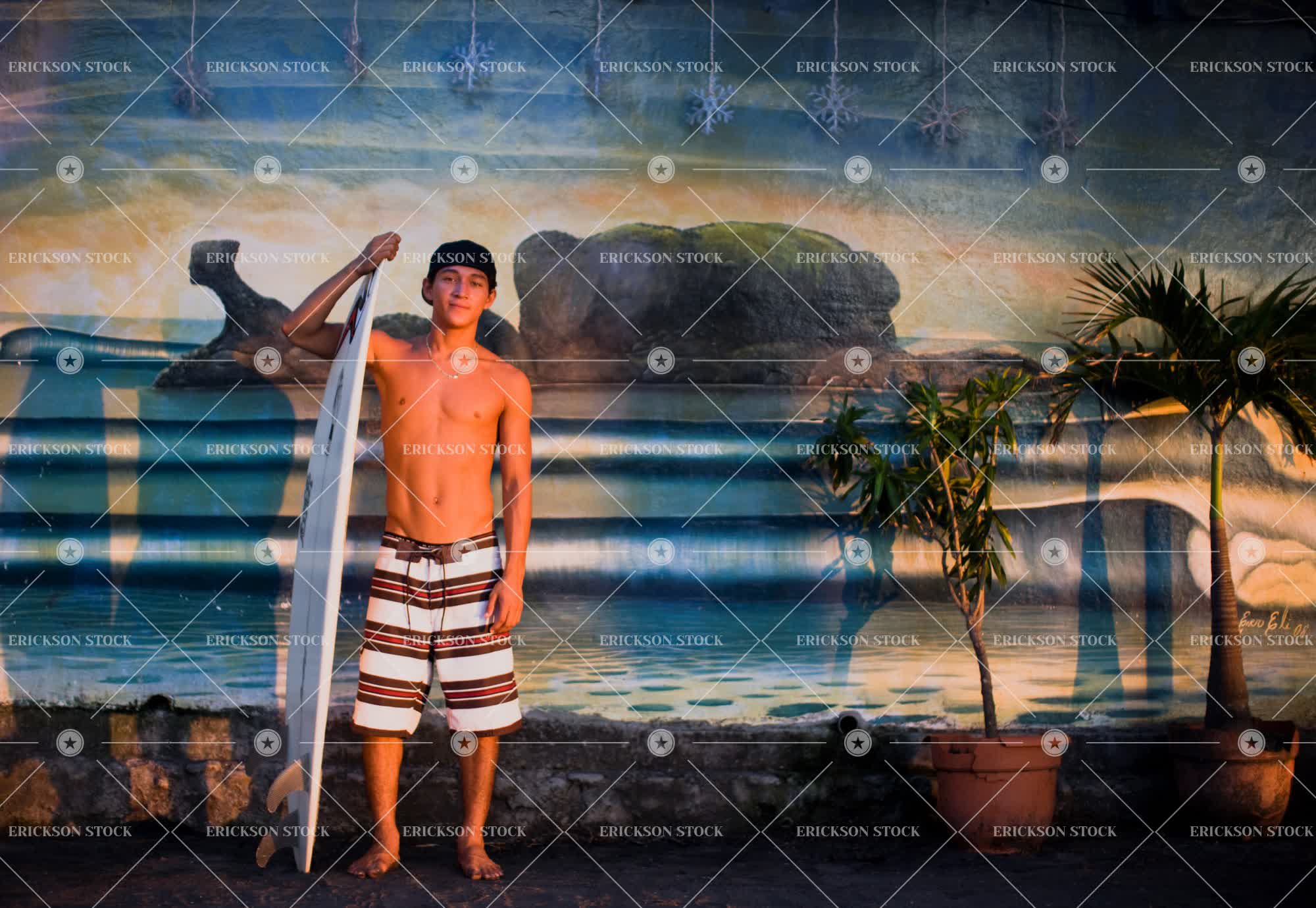 Tags adult, artistic, bare chested, boy, caucasian, child, copy space, create, day, el salvador, Eye contact, full length, horizontal, kid, kids, leisure, leisure activities, leisure activity, look at camera, looking at camera, male, man, mural, mural painting, mural paintings, murals, negative space, one person, outdoor, outdoors, outside, painting, paintings, people, person, pot plant, pot plants, potted plant, potted plants, recreation, recreational pursuit, recreational pursuits, selective focus, semi dress, semi dressed, shirtless, sport, Sports, stand, standing, stands, Surfboard, surfboards, Surfer, surfers, swimming trunks, swimwear, teenage boy, teenager, topless, wall, walls, water sport, young adult, youth